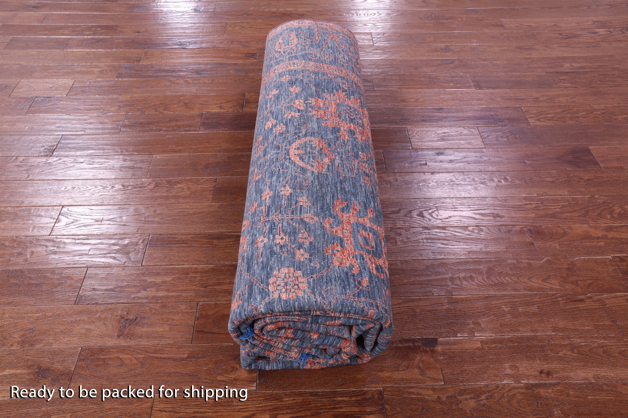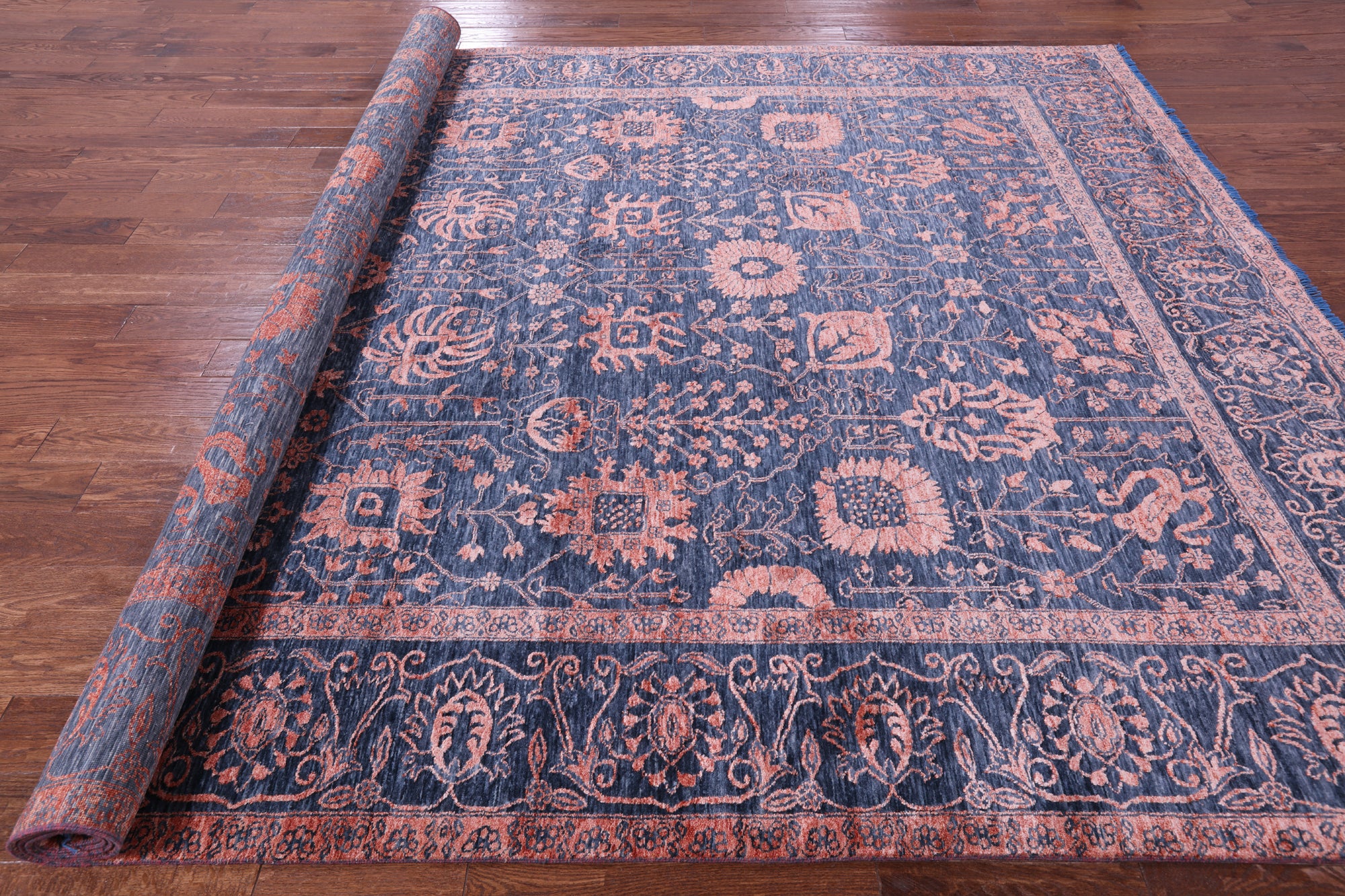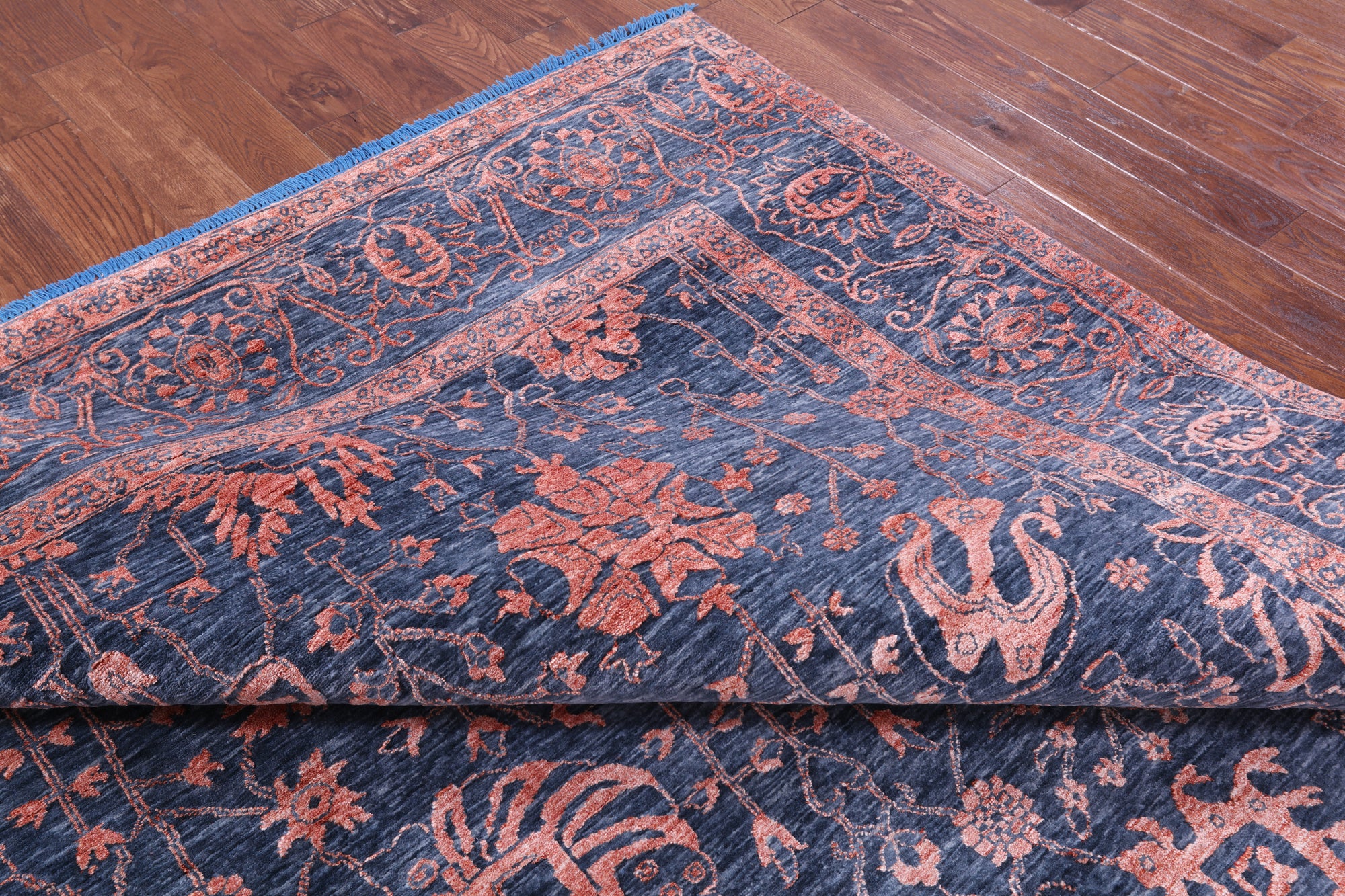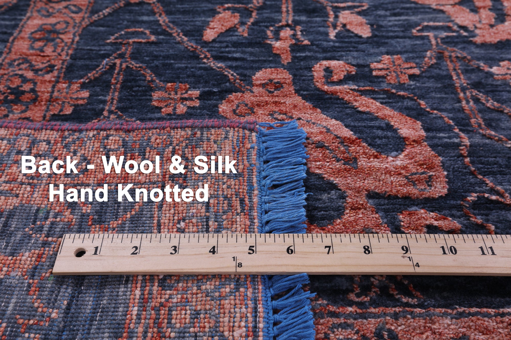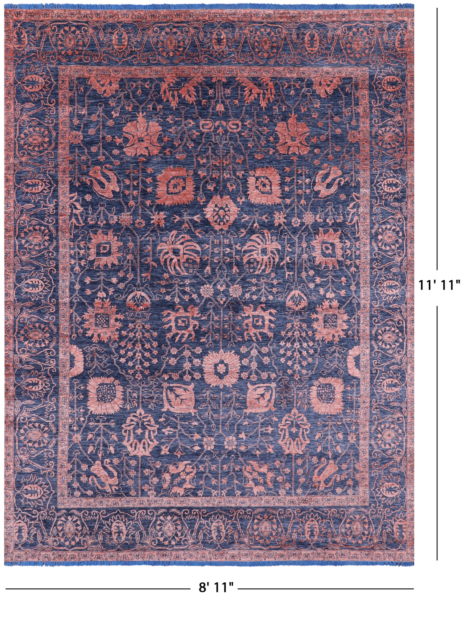 Grey Persian Tabriz Hand Knotted Wool & Silk Rug - 8' 11" X 11' 11"