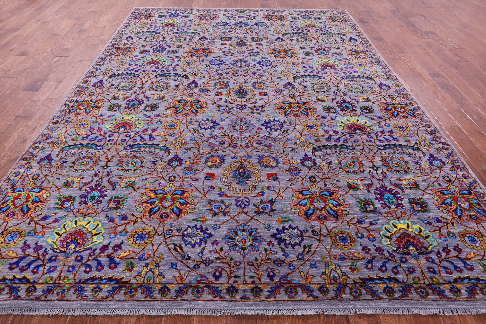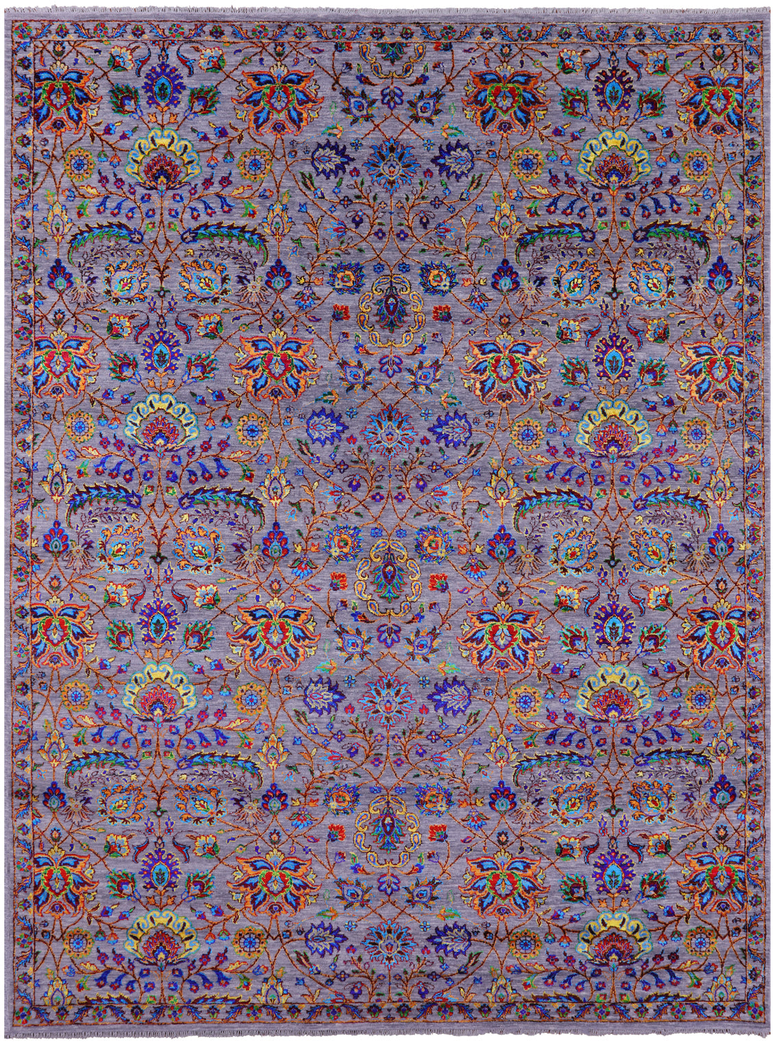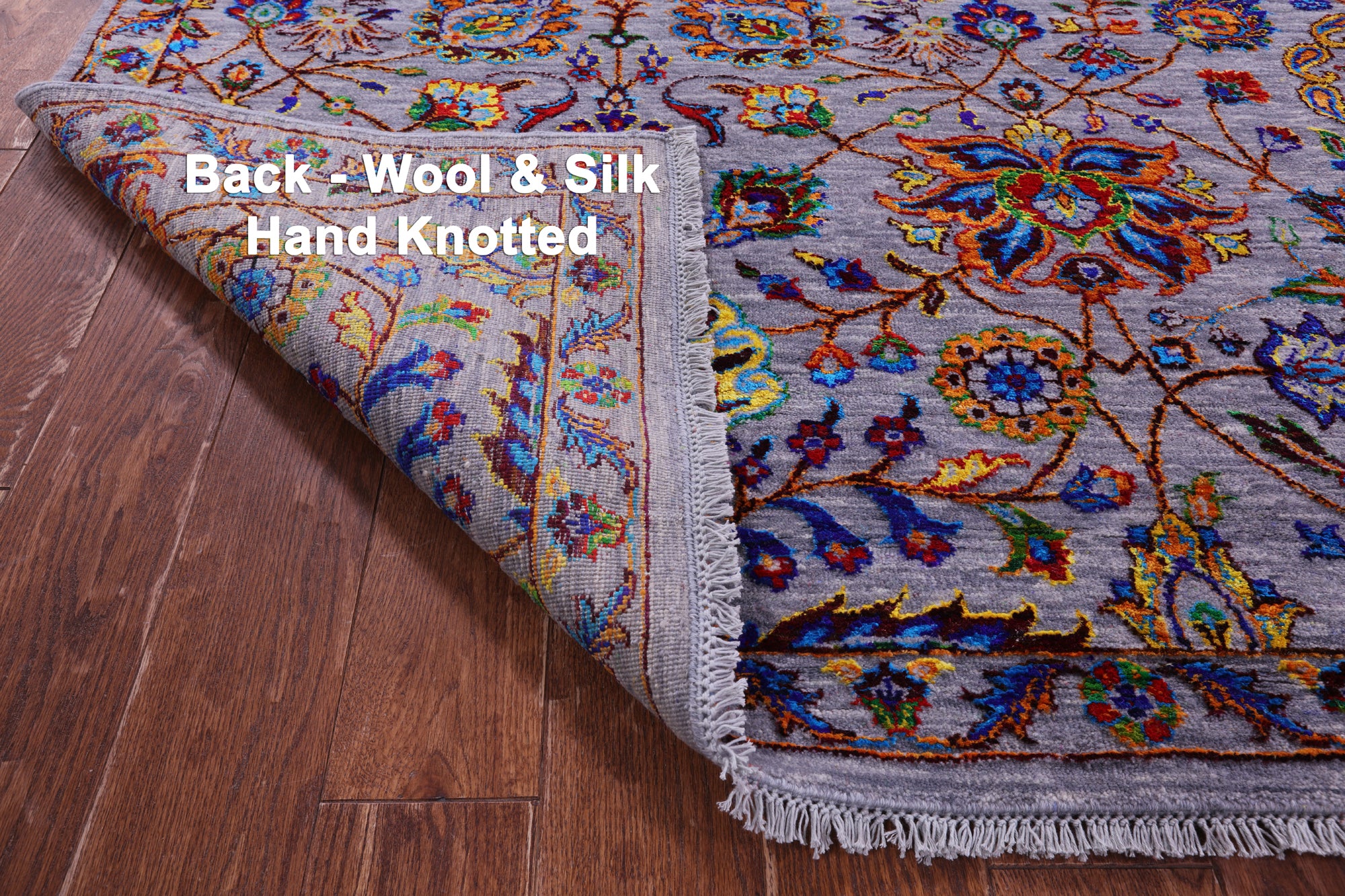 Grey Persian Tabriz Hand Knotted Wool & Silk Rug - 9' 0" X 12' 0"