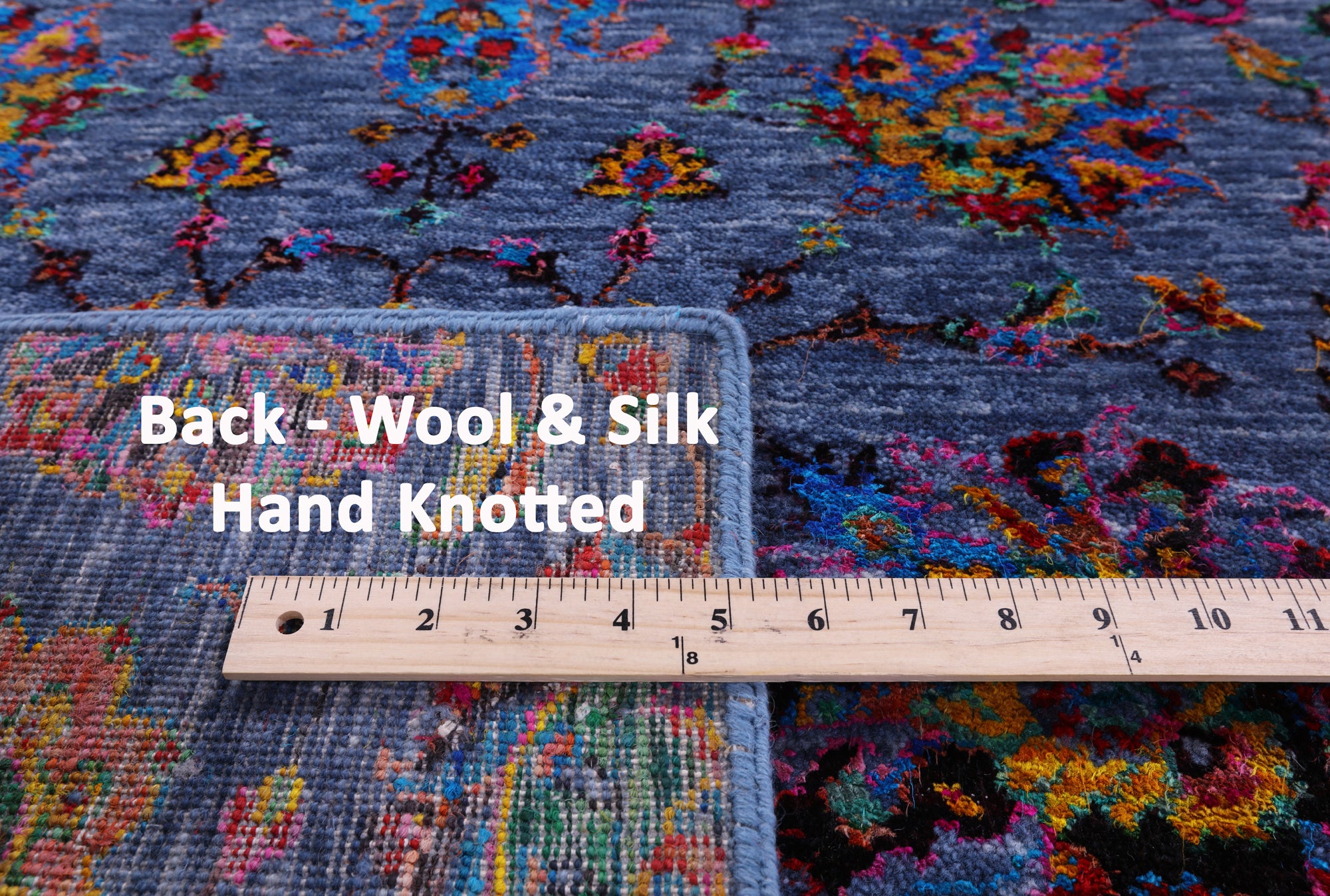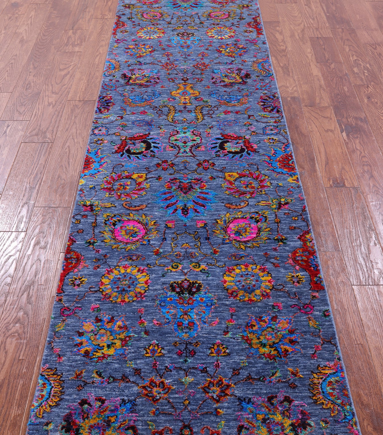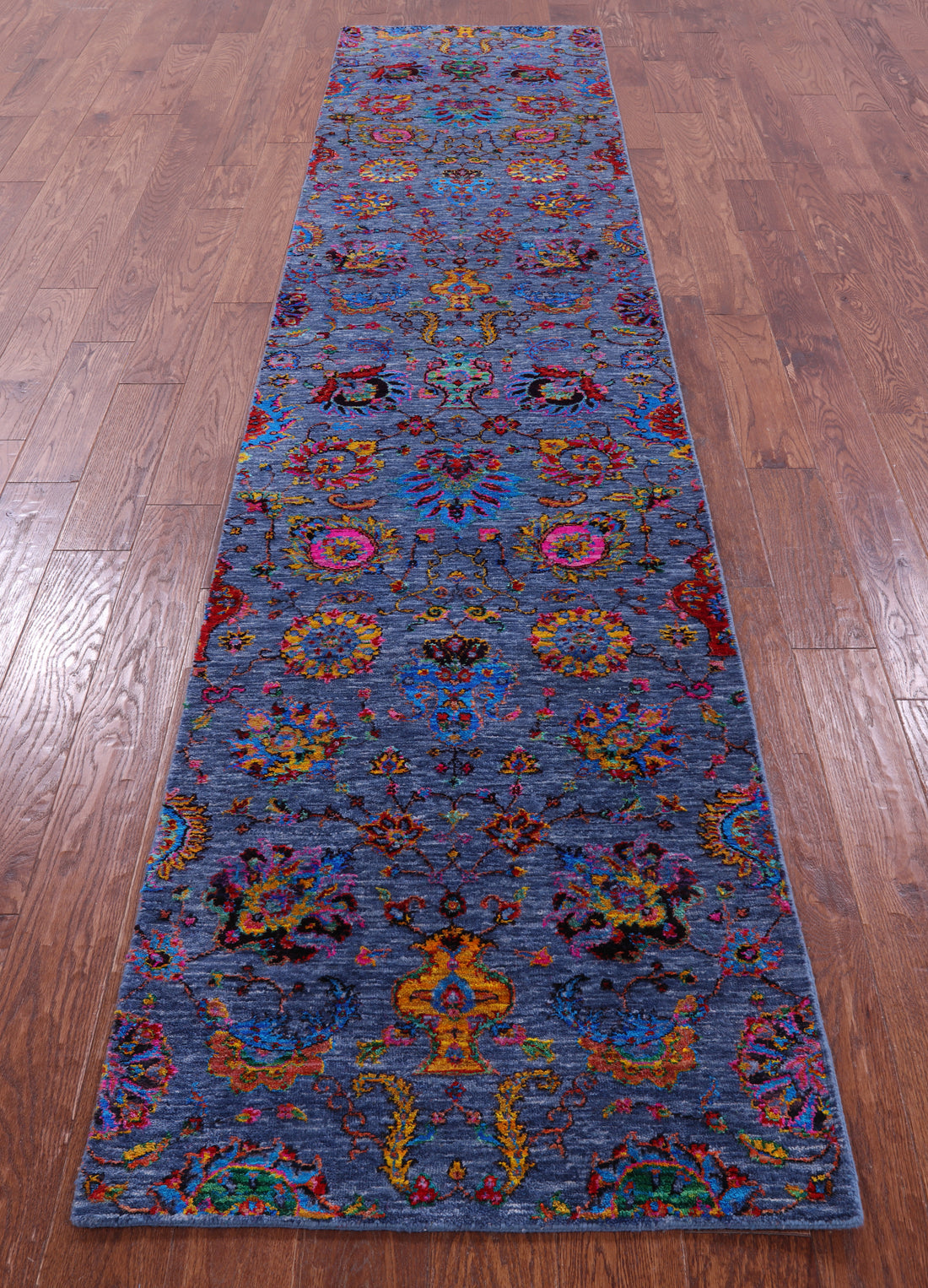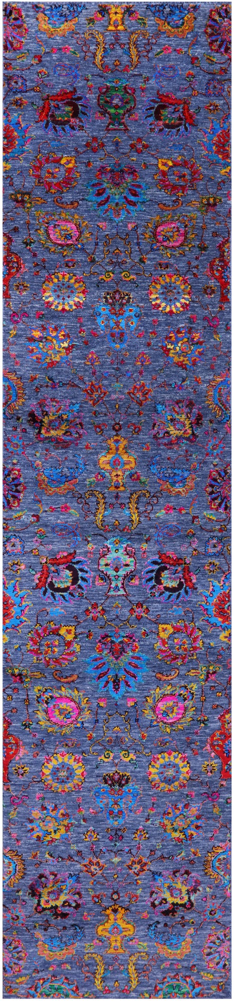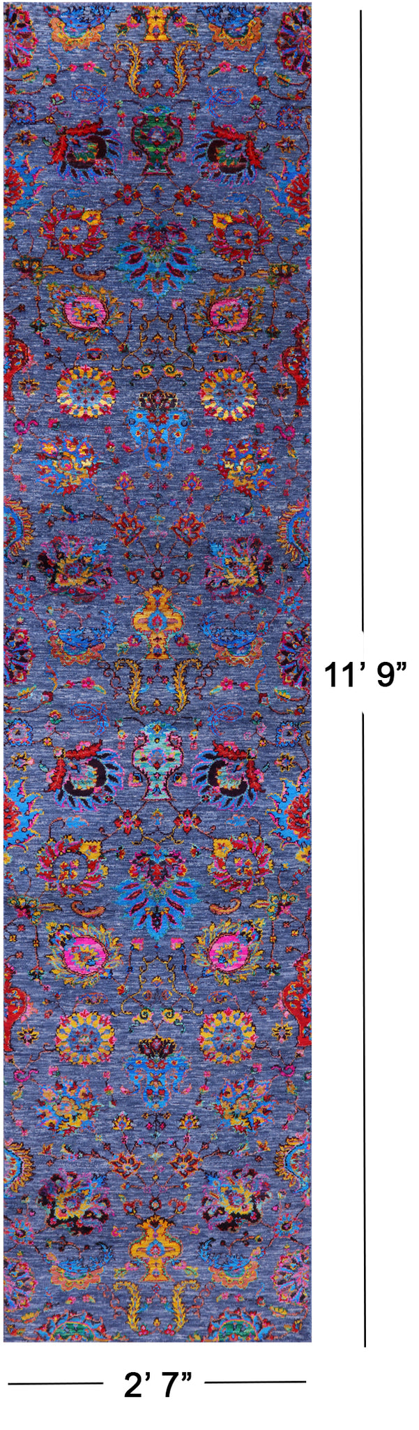Blue Persian Tabriz Hand Knotted Wool & Silk Runner Rug - 2' 7" X 11' 9"