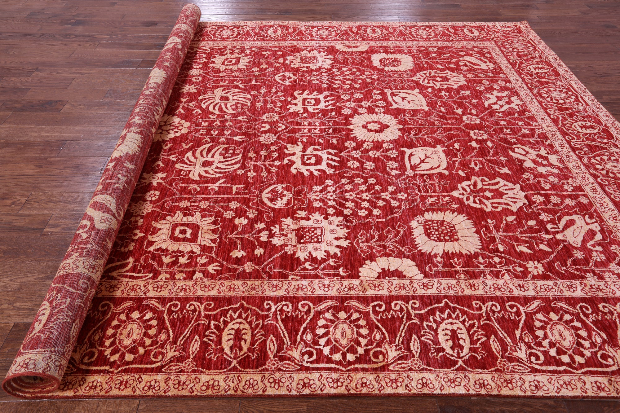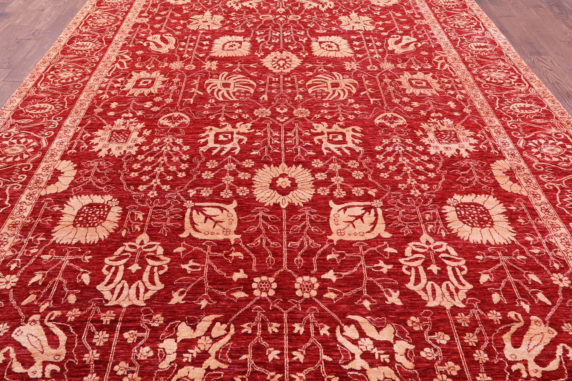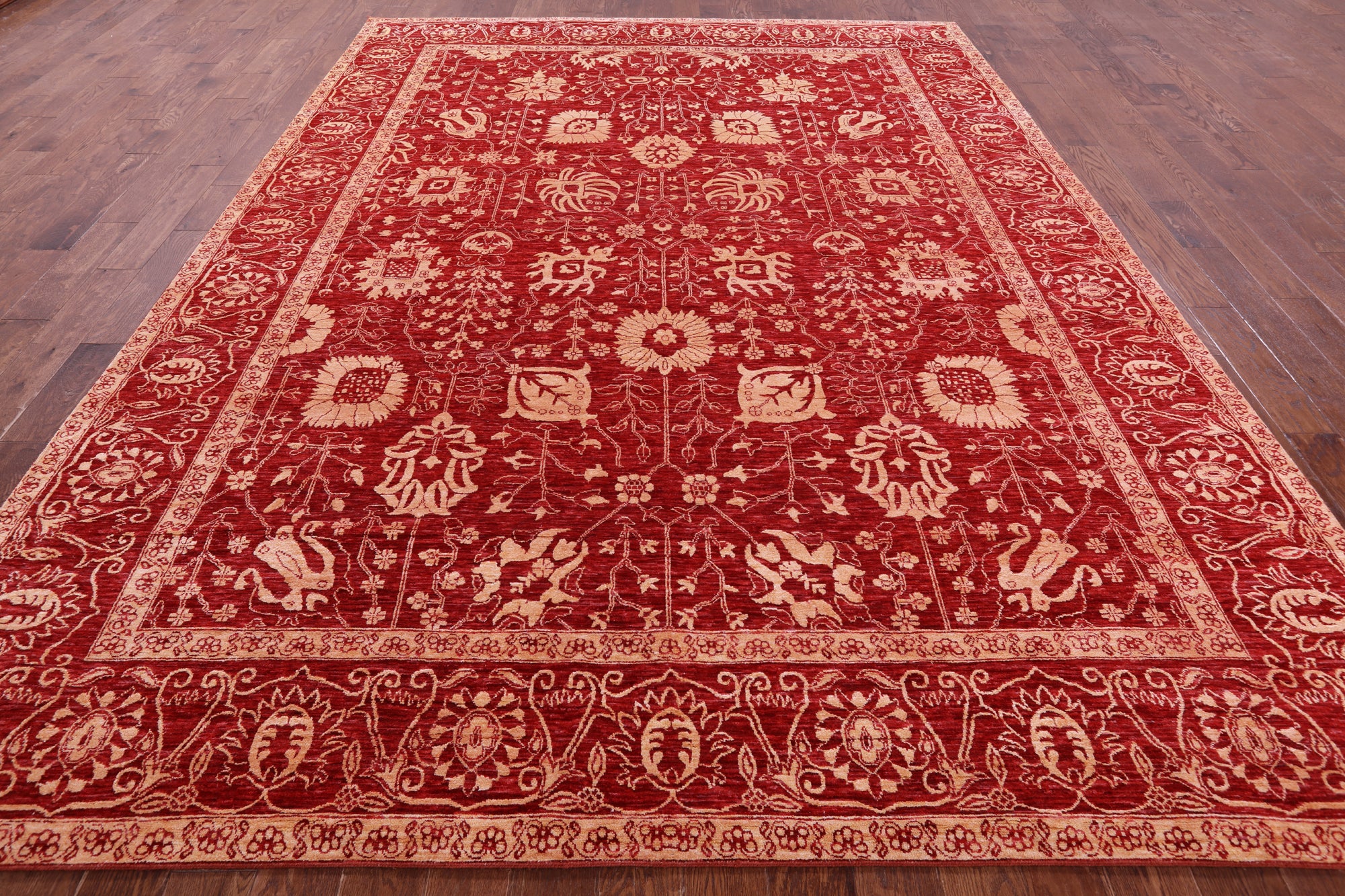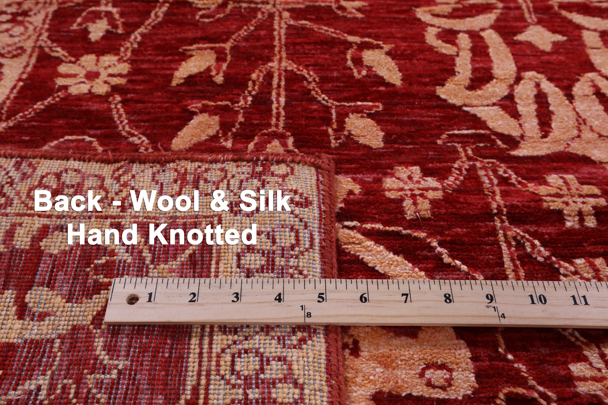Red Persian Tabriz Handmade Wool & Silk Rug - 9' 1" X 12' 2"