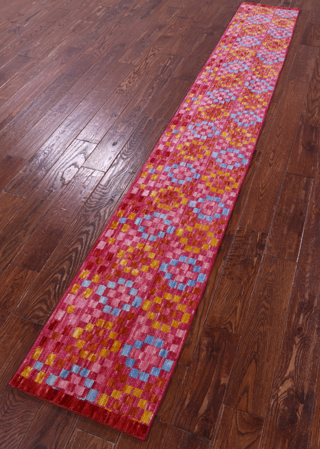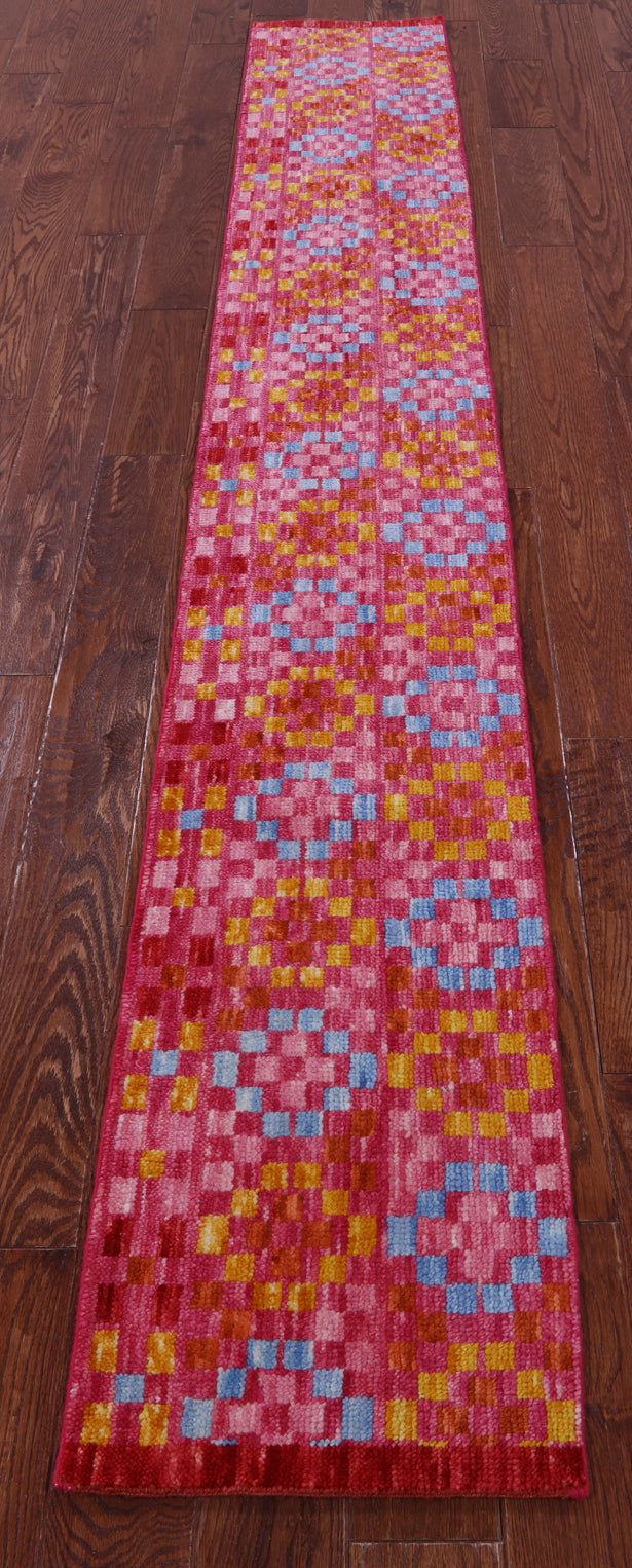 Pink Tribal Moroccan Handmade Wool Runner Rug - 1' 6" X 9' 9"