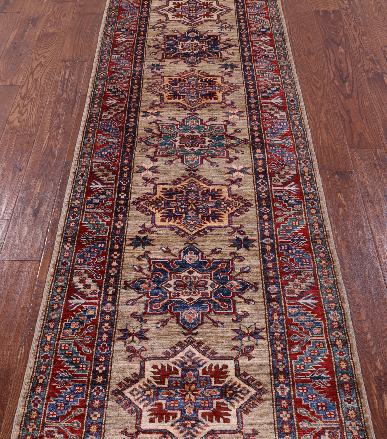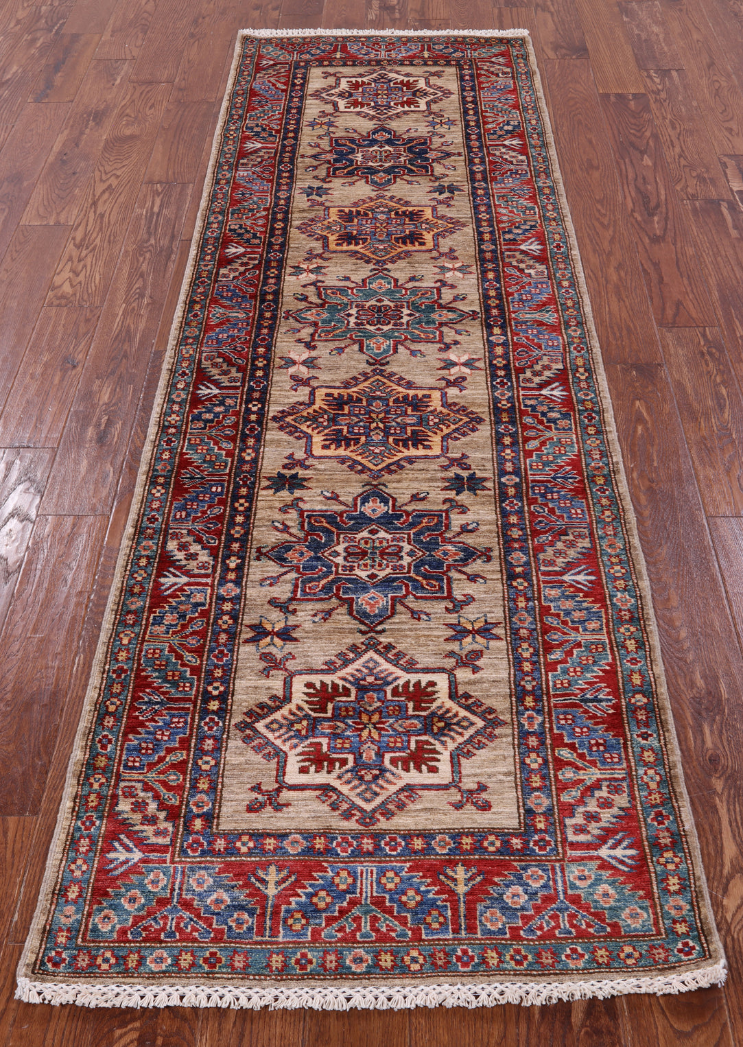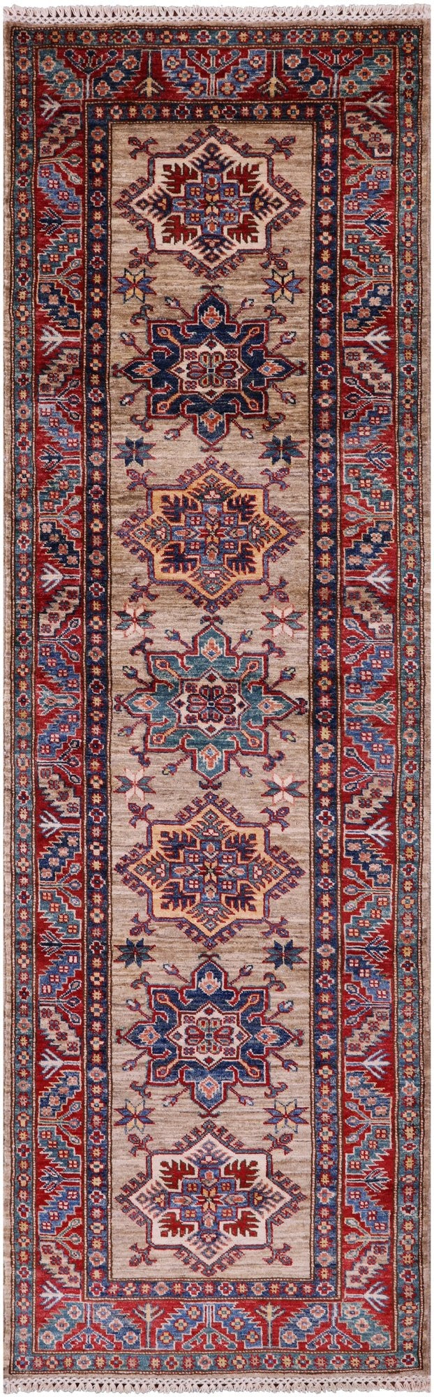Super Kazak Hand Knotted Wool Runner Rug - 2' 9" X 8' 10"
