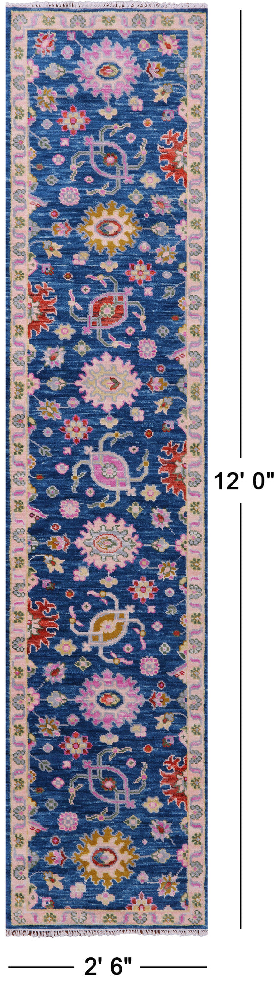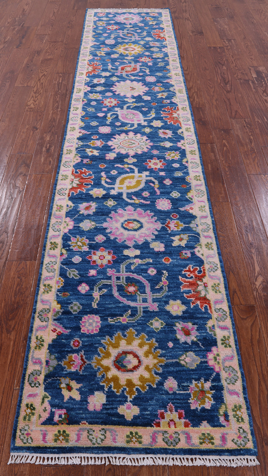 Blue Turkish Oushak Hand Knotted Wool Runner Rug - 2' 6" X 12' 0"
