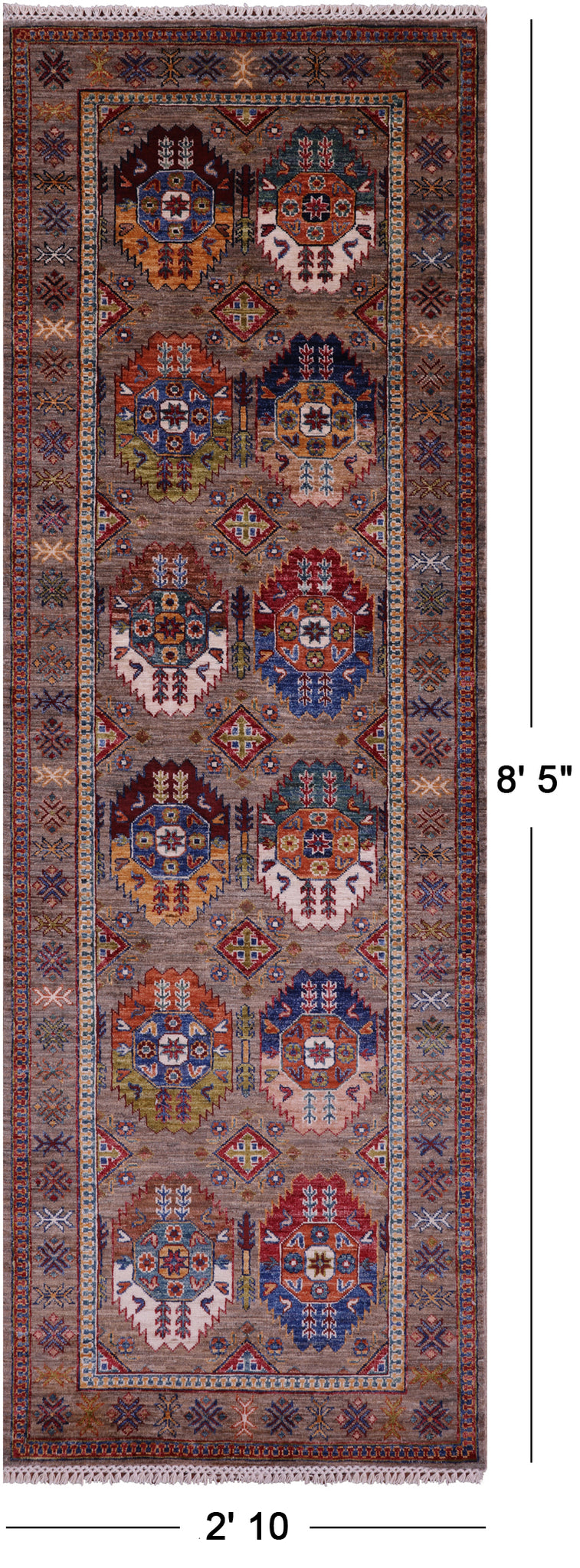 Turkmen Ersari Handmade Wool Runner Rug - 2' 10" X 8' 5"