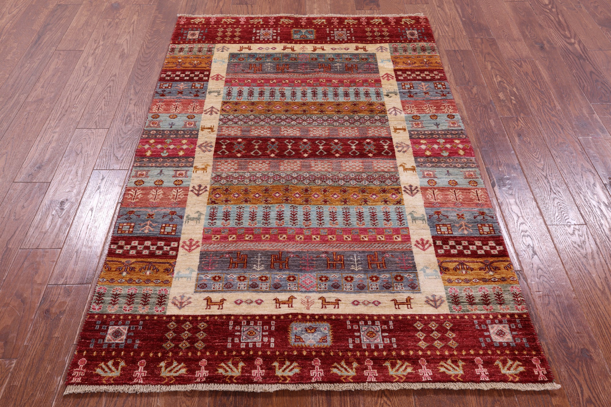 Tribal Persian Gabbeh Hand Knotted Wool Rug - 4' 1" X 6' 0"