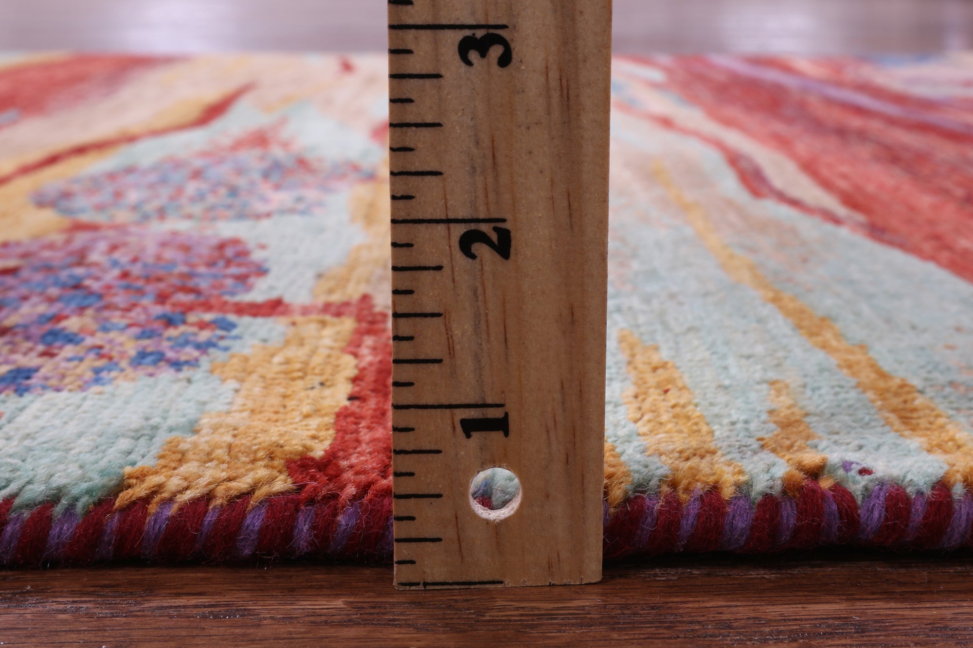 Gabbeh Rugs feature hand-spun wool in both the pile and foundation. These rugs are characterized by their abstract designs that relies upon open fields of color and a playfulness with geometric figures used to depict a story, person, or event. Gabbeh Rugs are popular in a contemporary or modern setting and are extremely durable, usually small to medium size.