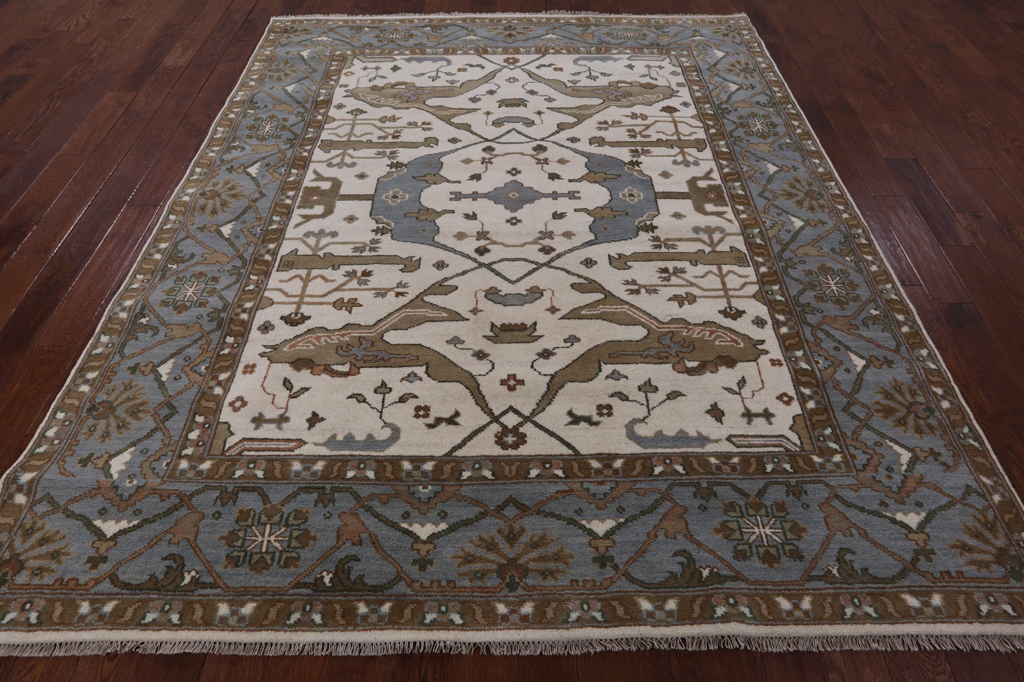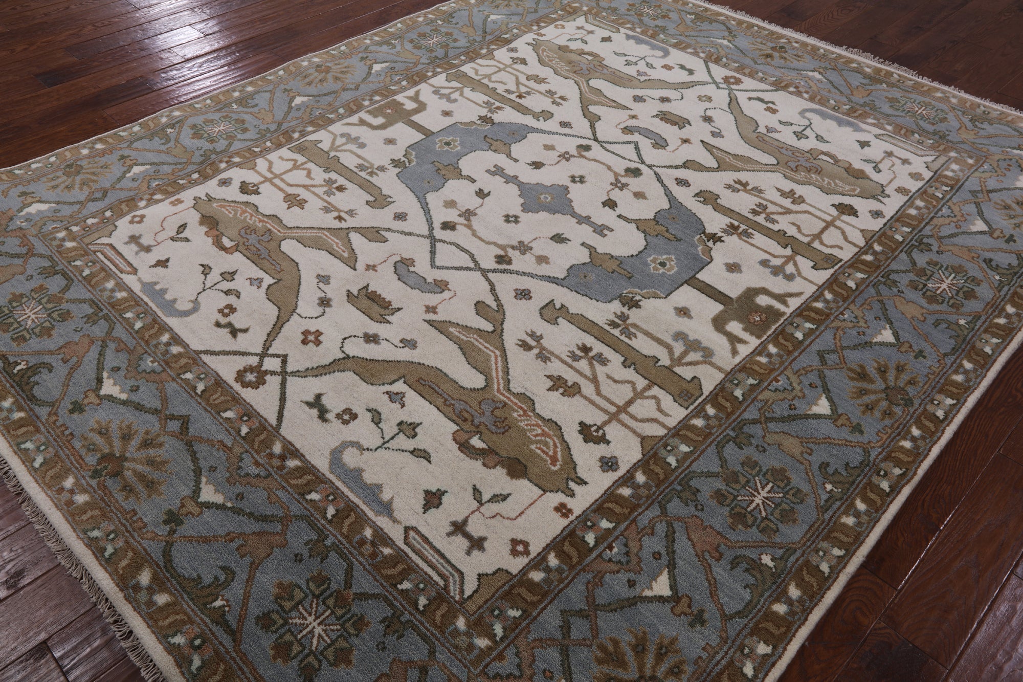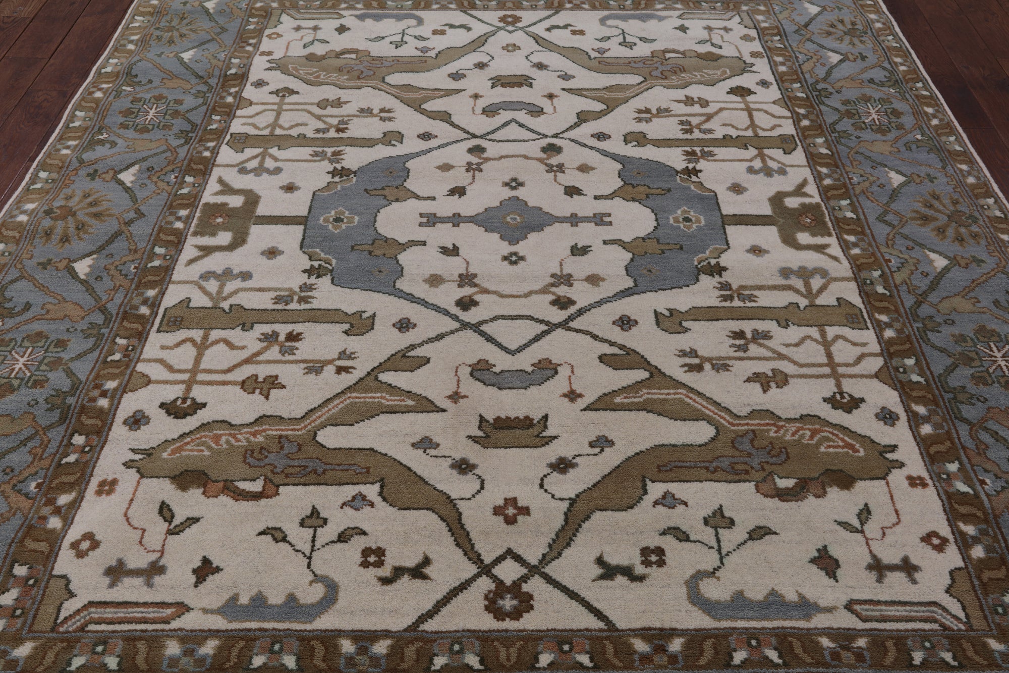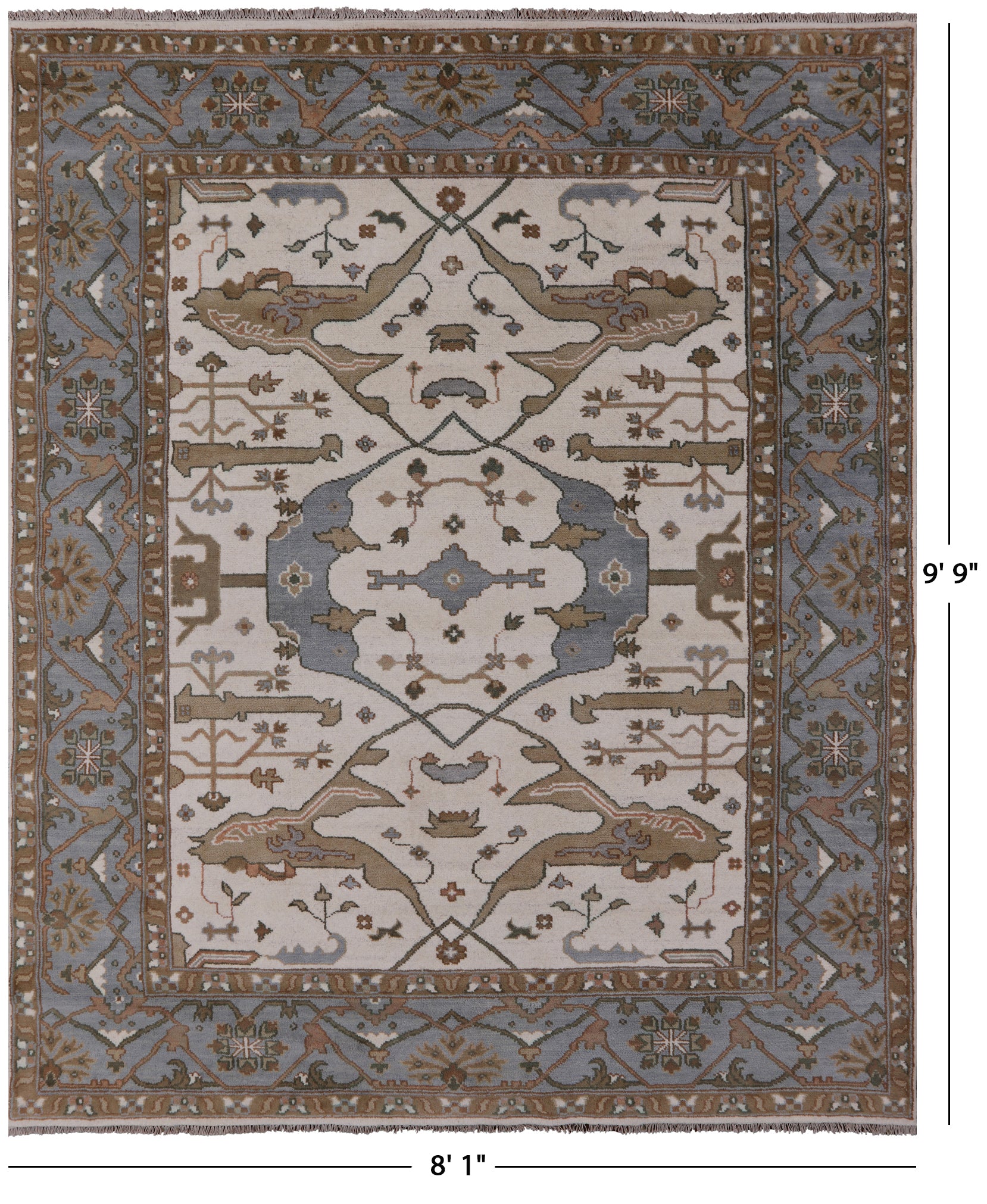 Ivory Turkish Oushak Hand Knotted Wool Area Rug - 8' 1" X 9' 9"