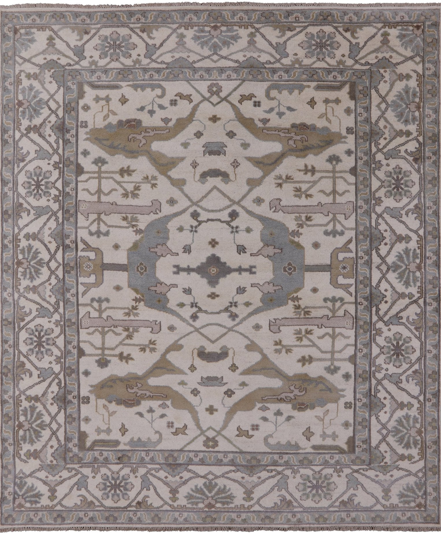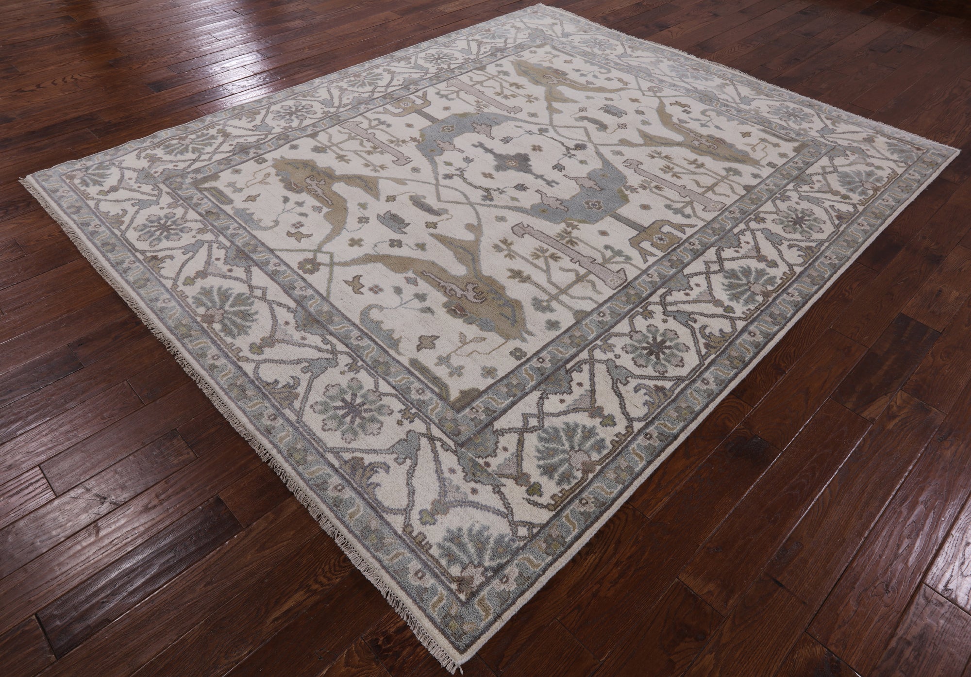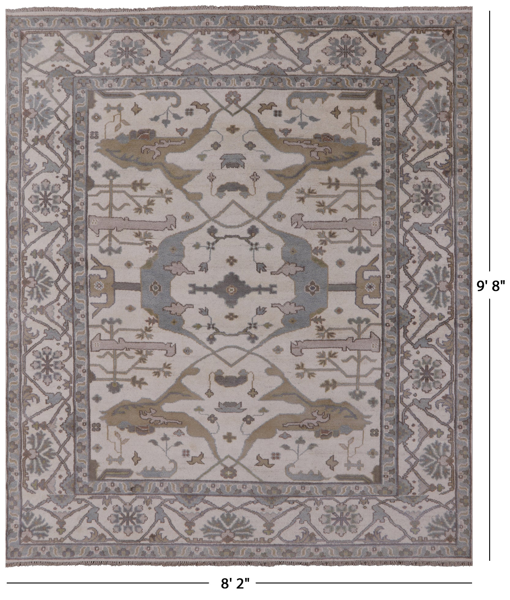 Ivory Turkish Oushak Hand Knotted Wool Area Rug - 8' 2" X 9' 8"