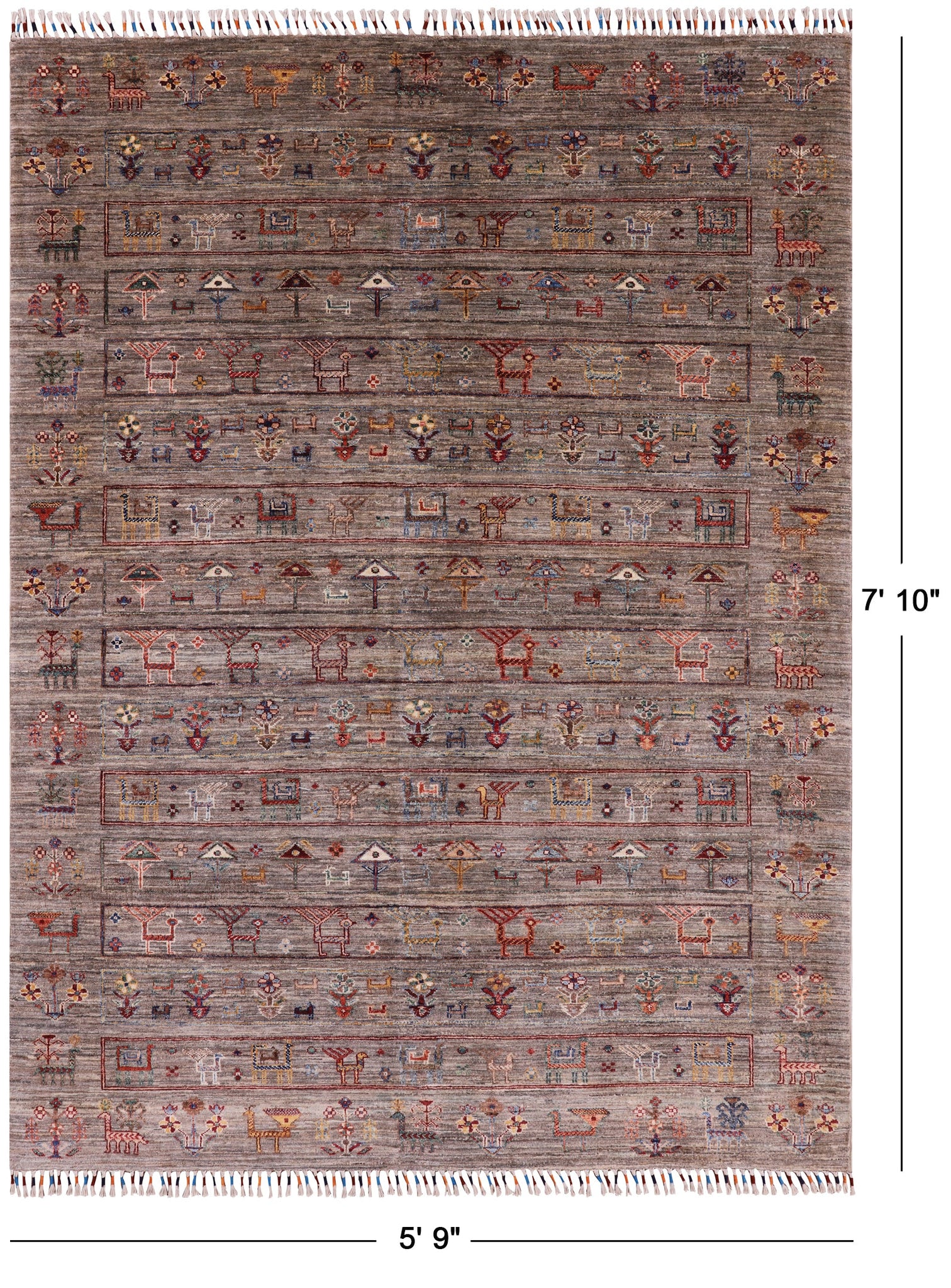 Tribal Gabbeh Hand Knotted Wool Area Rug - 5' 9" X 7' 10"
