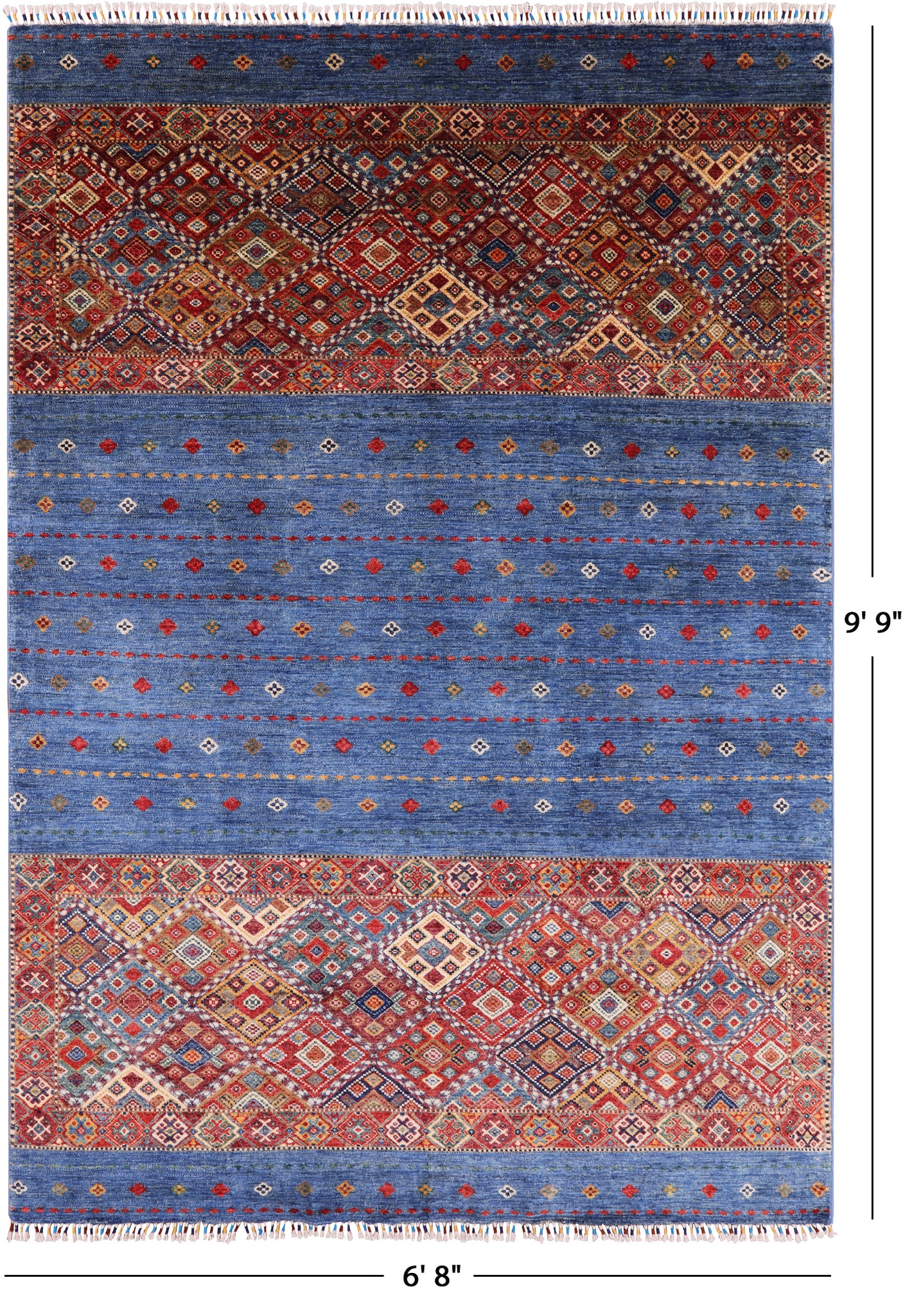 Blue Khorjin Persian Gabbeh Handmade Wool Rug - 6' 8" X 9' 9"