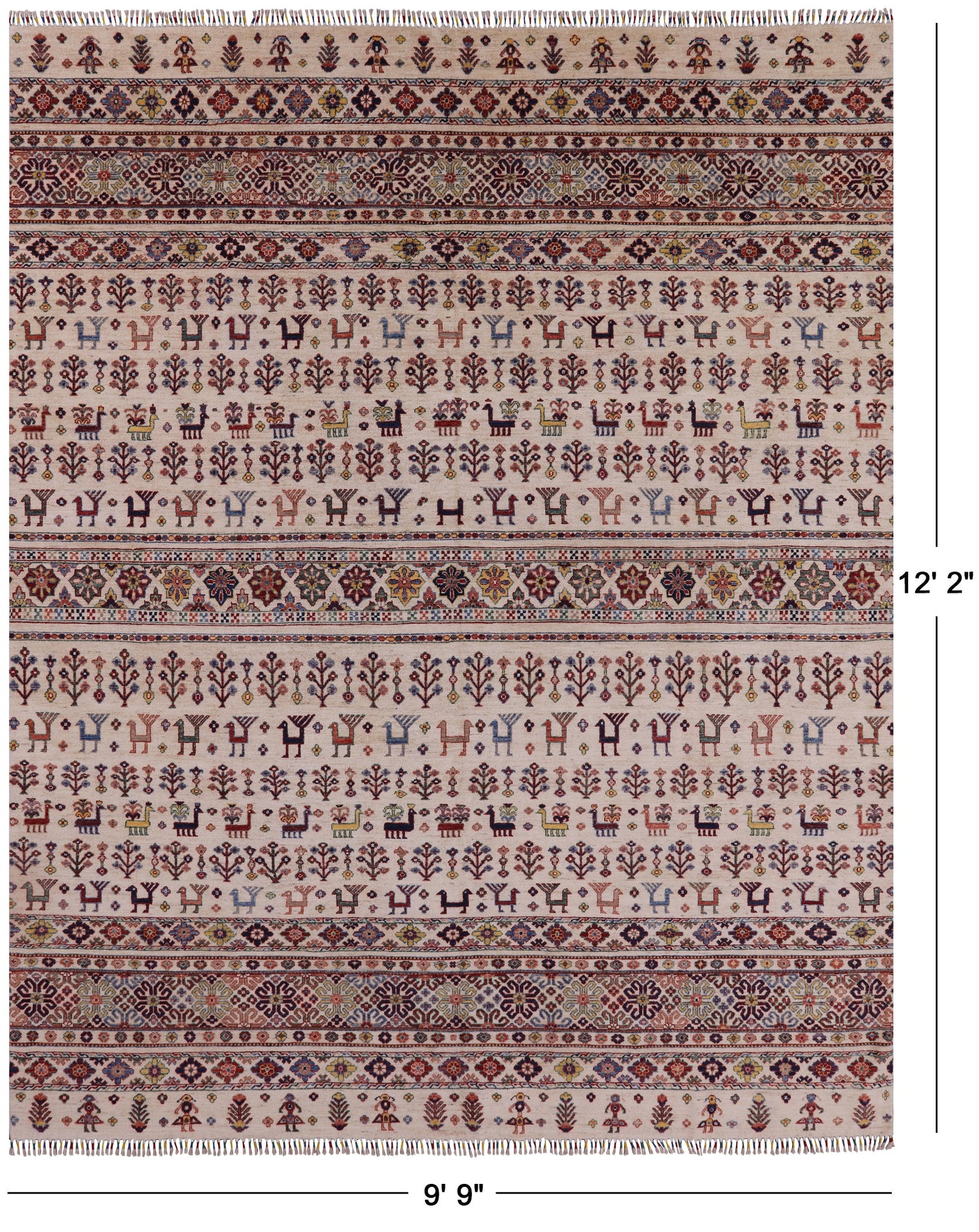 Ivory Tribal Gabbeh Handmade Wool Area Rug - 9' 9" X 12' 2"