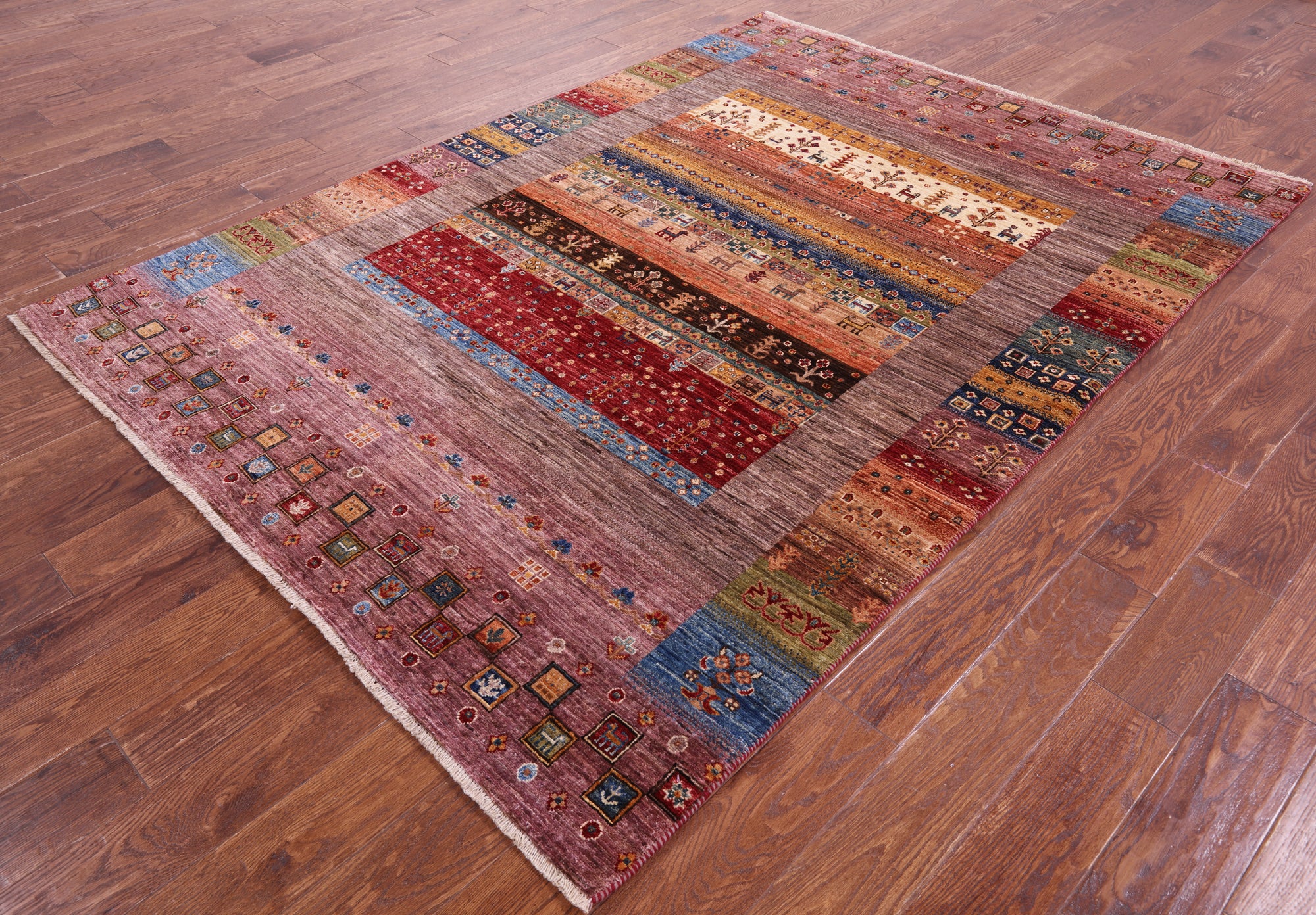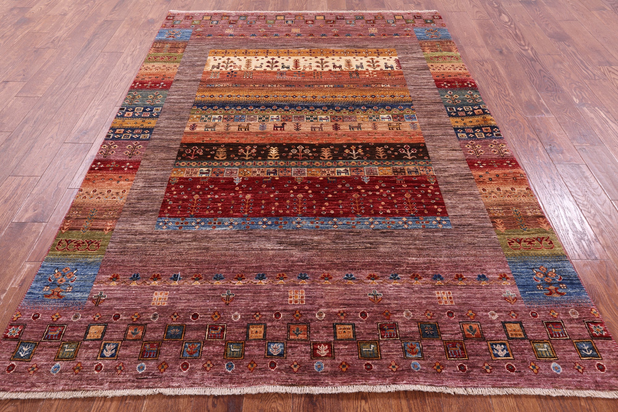 Gabbeh Rugs feature hand-spun wool in both the pile and foundation. These rugs are characterized by their abstract designs that relies upon open fields of color and a playfulness with geometric figures used to depict a story, person, or event. Gabbeh Rugs are popular in a contemporary or modern setting and are extremely durable, usually small to medium size.