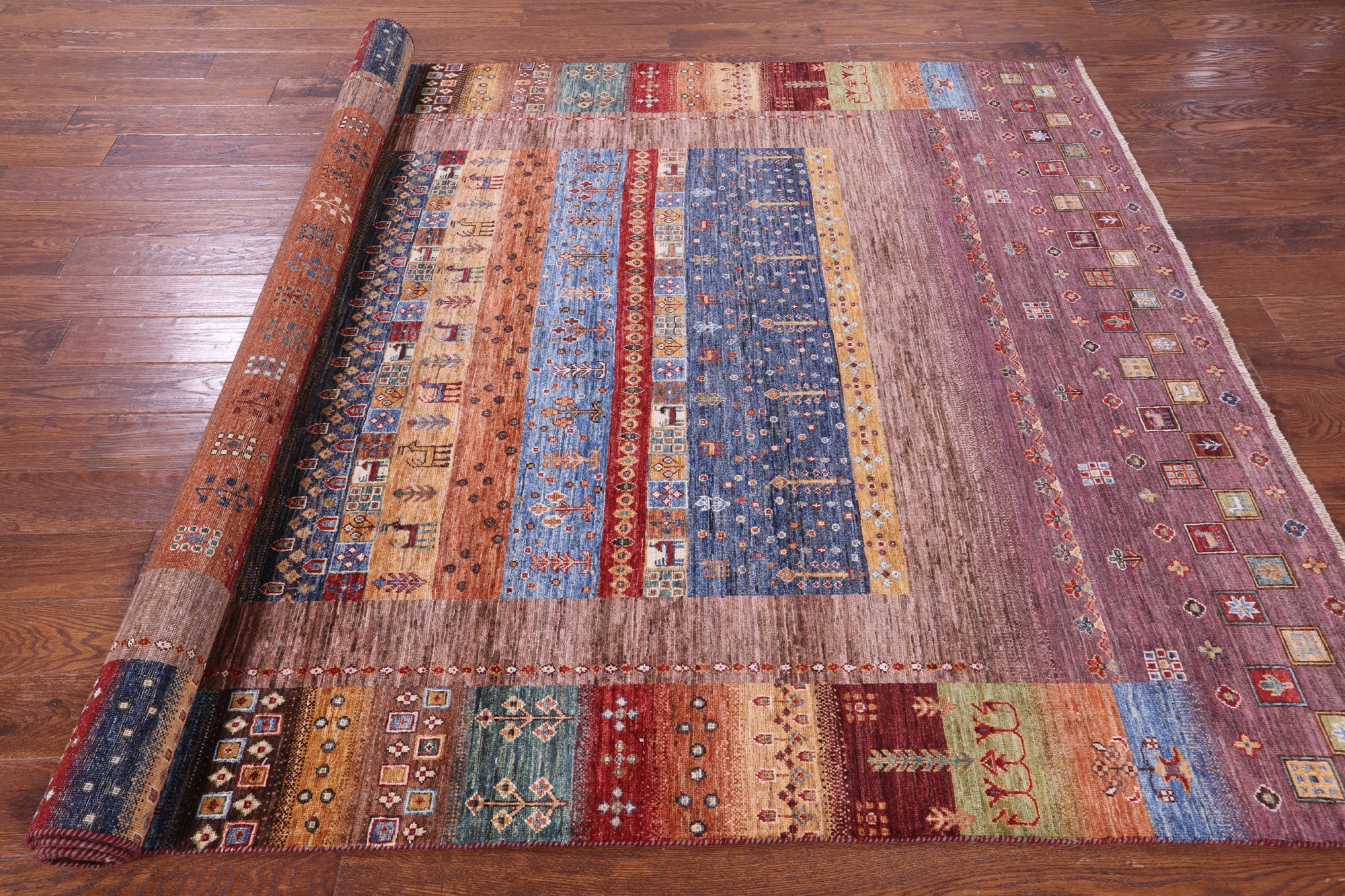 Persian Gabbeh Tribal Hand Knotted Wool Rug - 6' 6" X 9' 9"