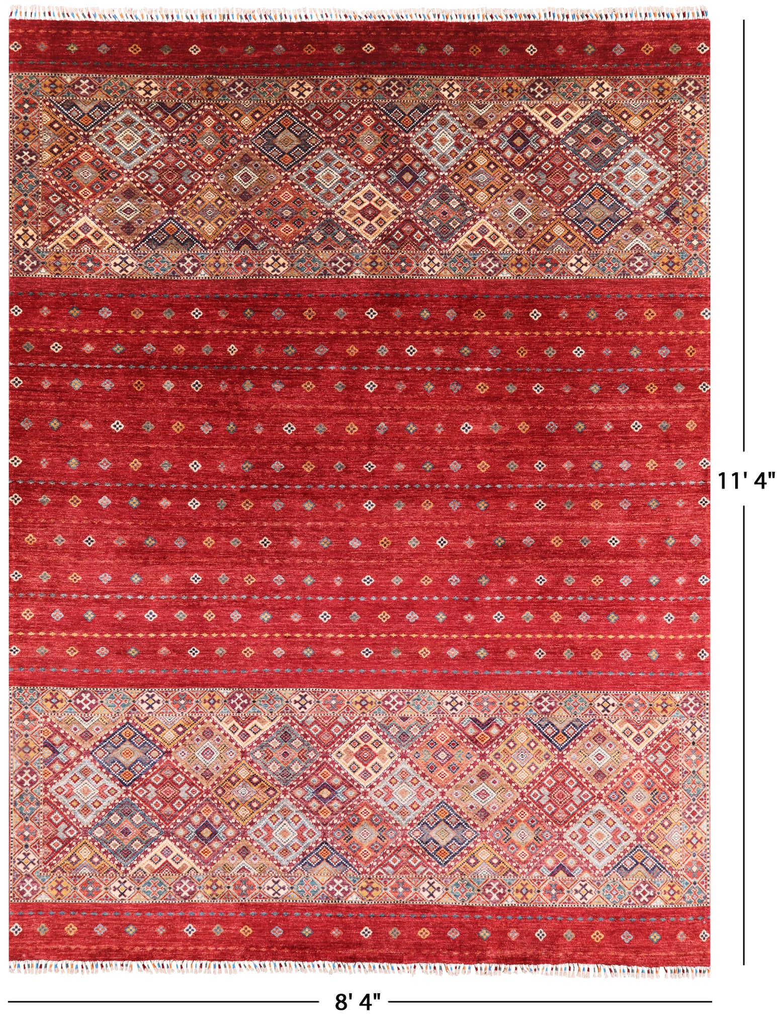 Red Khorjin Persian Gabbeh Handmade Wool Area Rug - 8' 4" X 11' 4"