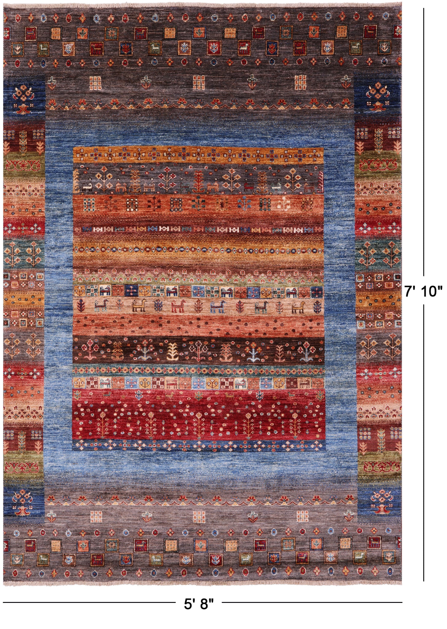 Tribal Persian Gabbeh Handmade Wool Rug - 5' 8" X 7' 10"
