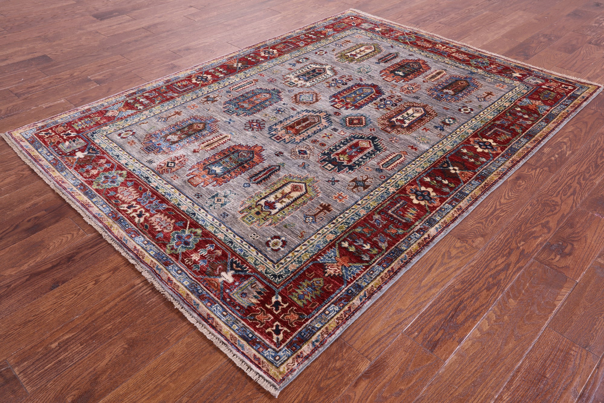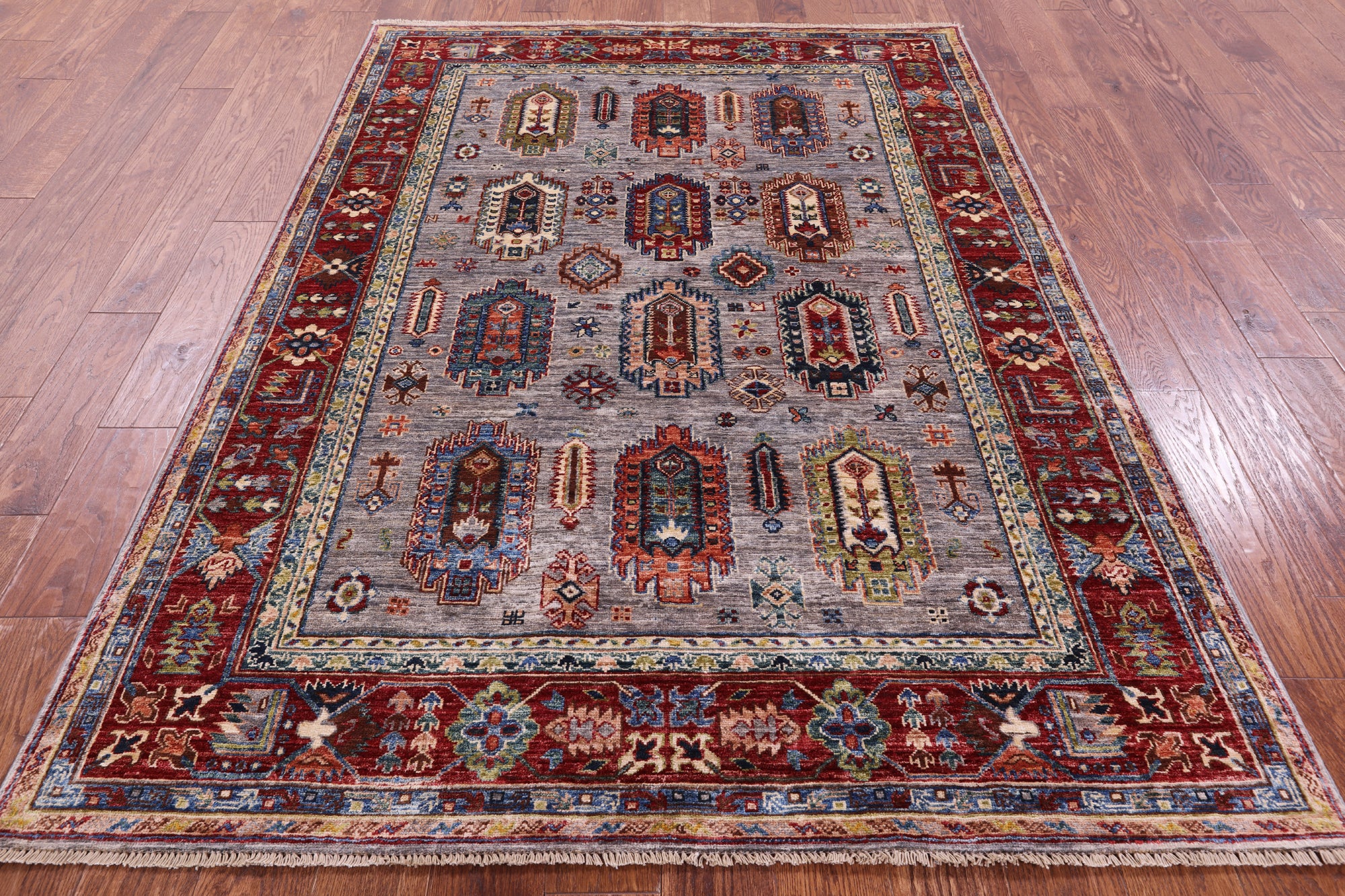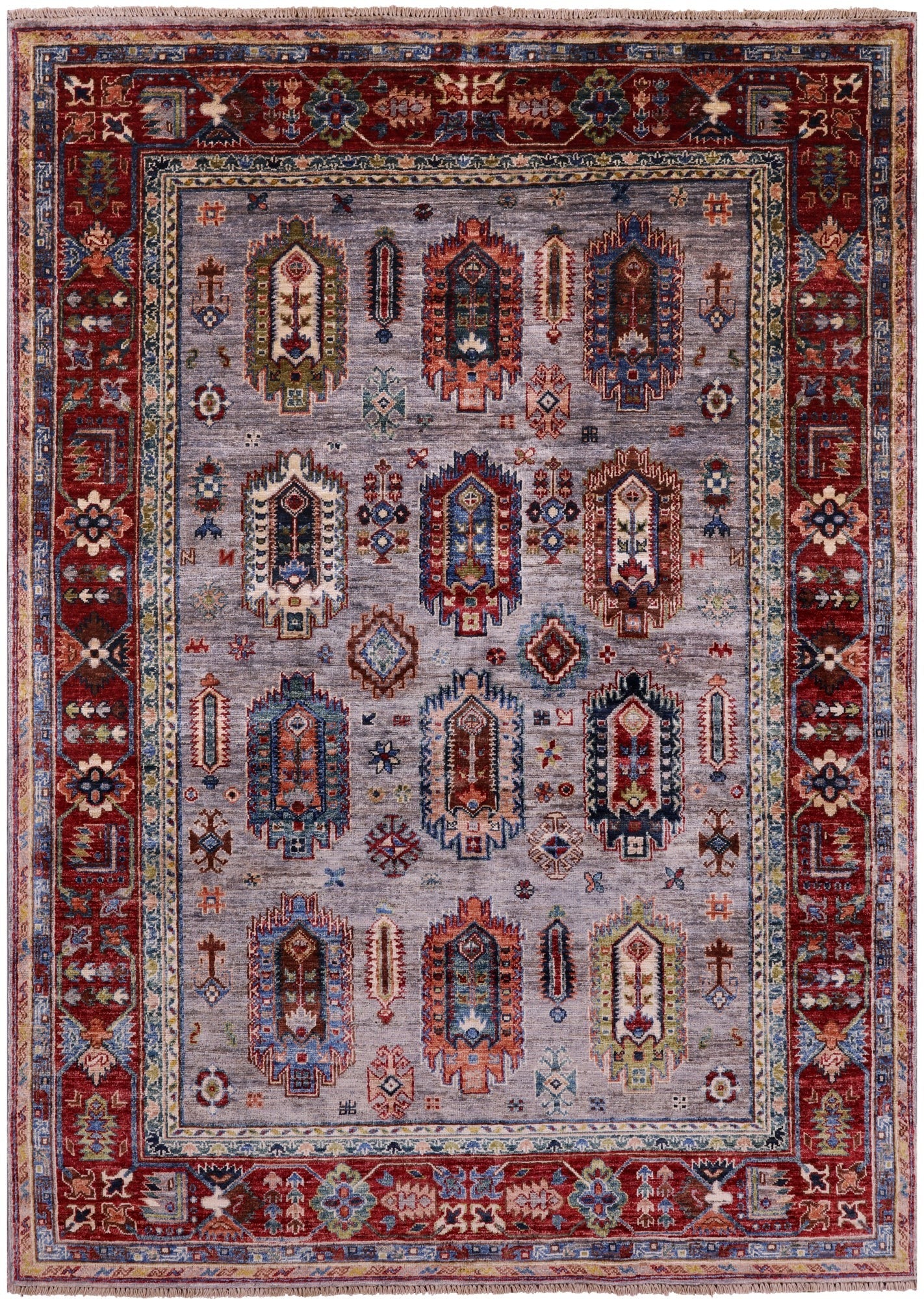 Grey Turkmen Ersari Hand Knotted Wool Rug - 5' 0" X 7' 0"