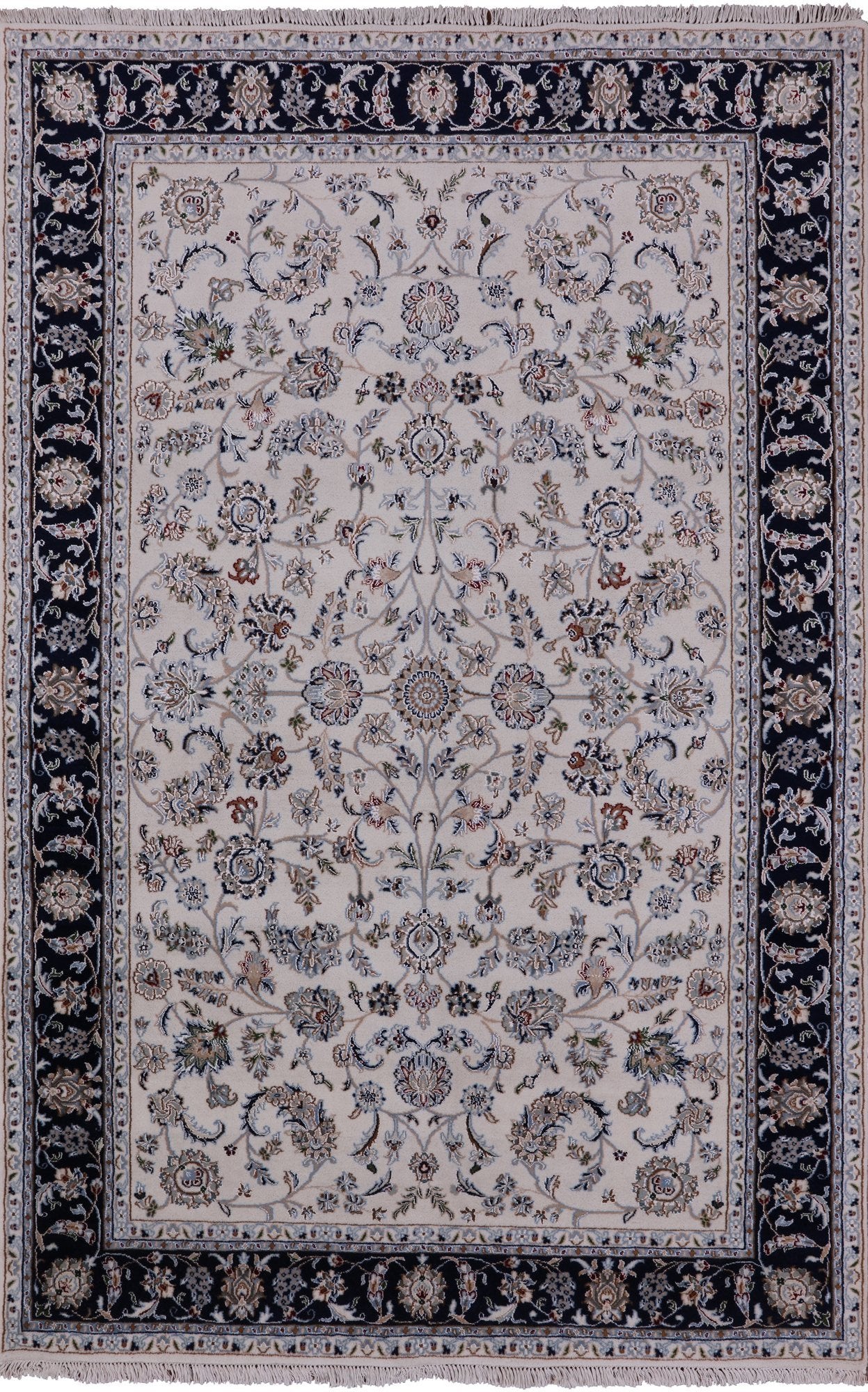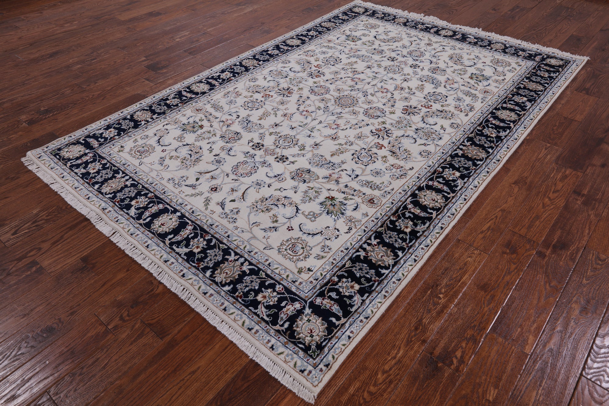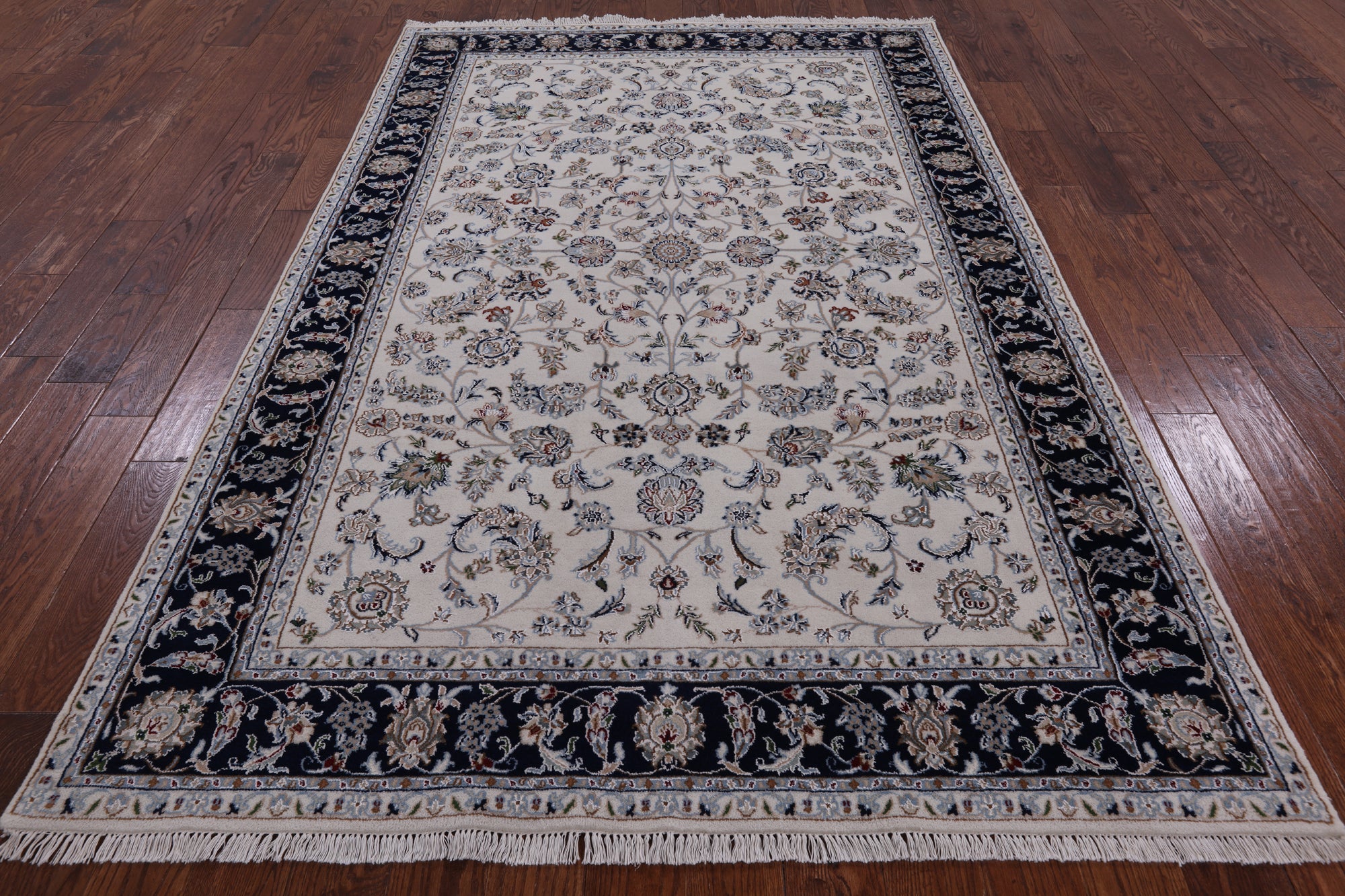 Persian Nain Handmade Wool & Silk Area Rug - 5' 10" X 9'