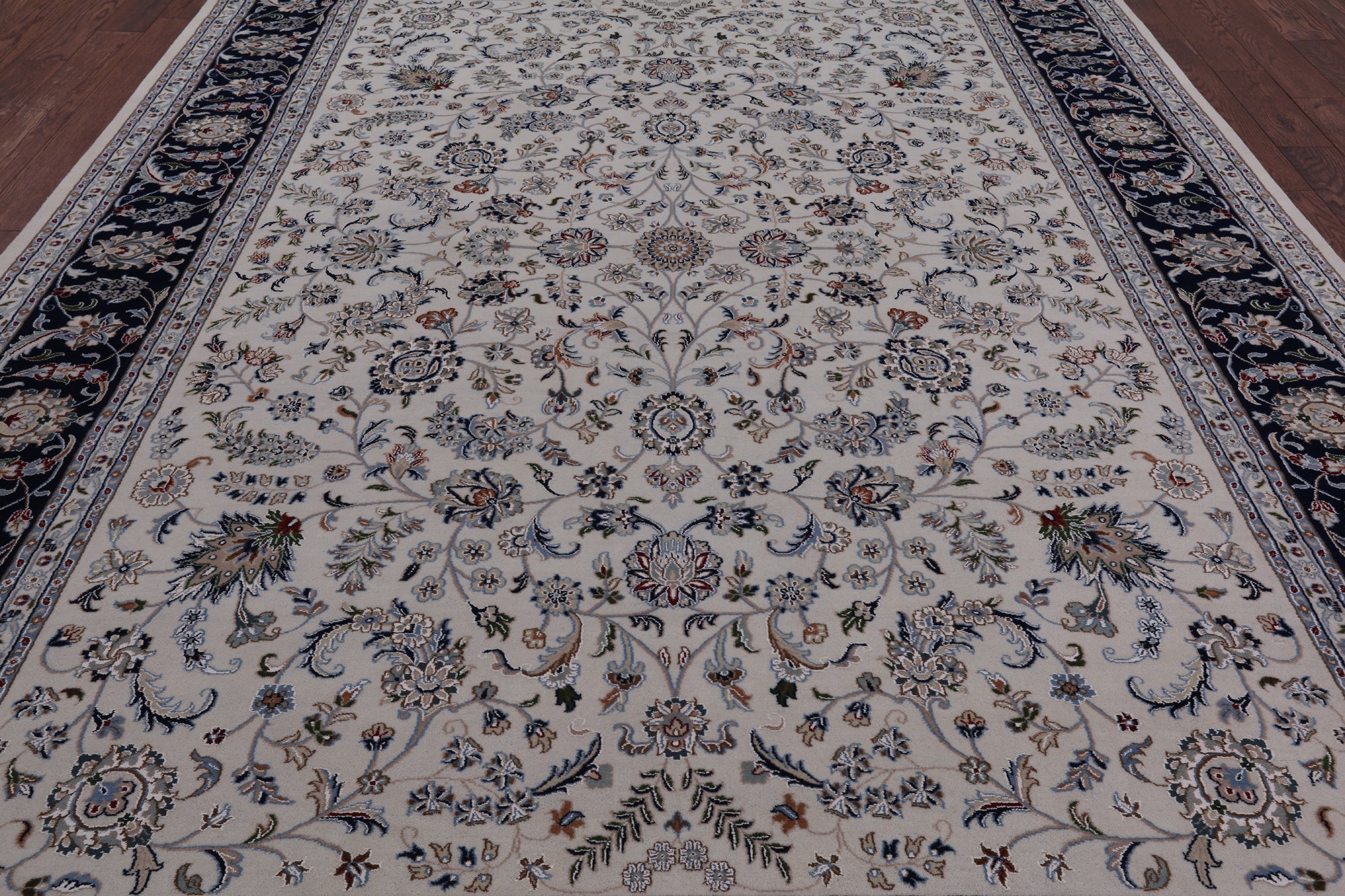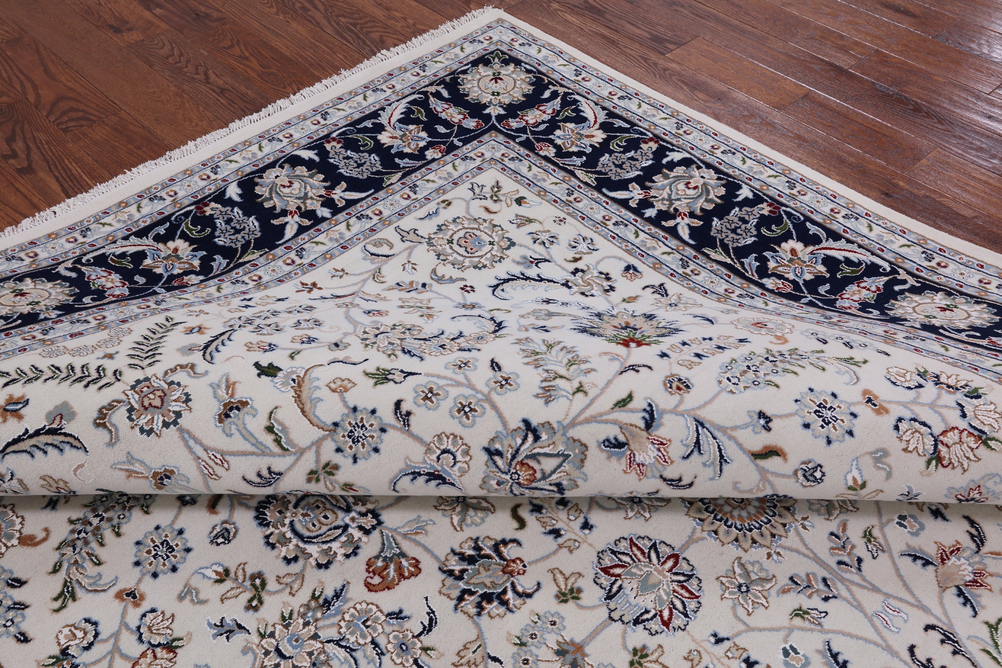 These rugs are particularly popular, they have a high knot density and the materials consist of wool and silk warp. In addition to the high quality of the material itself the designs and color combinations are simply magnificent for Nain rugs. Most have patterns with medallions in the middle and floral motifs. Silk is used as a highlighting tool in the detail of the design. Nain rugs are clipped short so the design stands out even more than on other rugs.