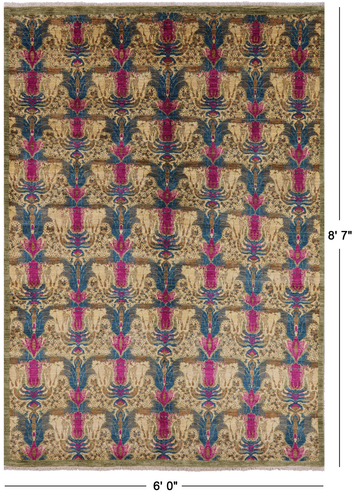 Green William Morris Handmade Wool Area Rug - 6' 0" X 8' 7"