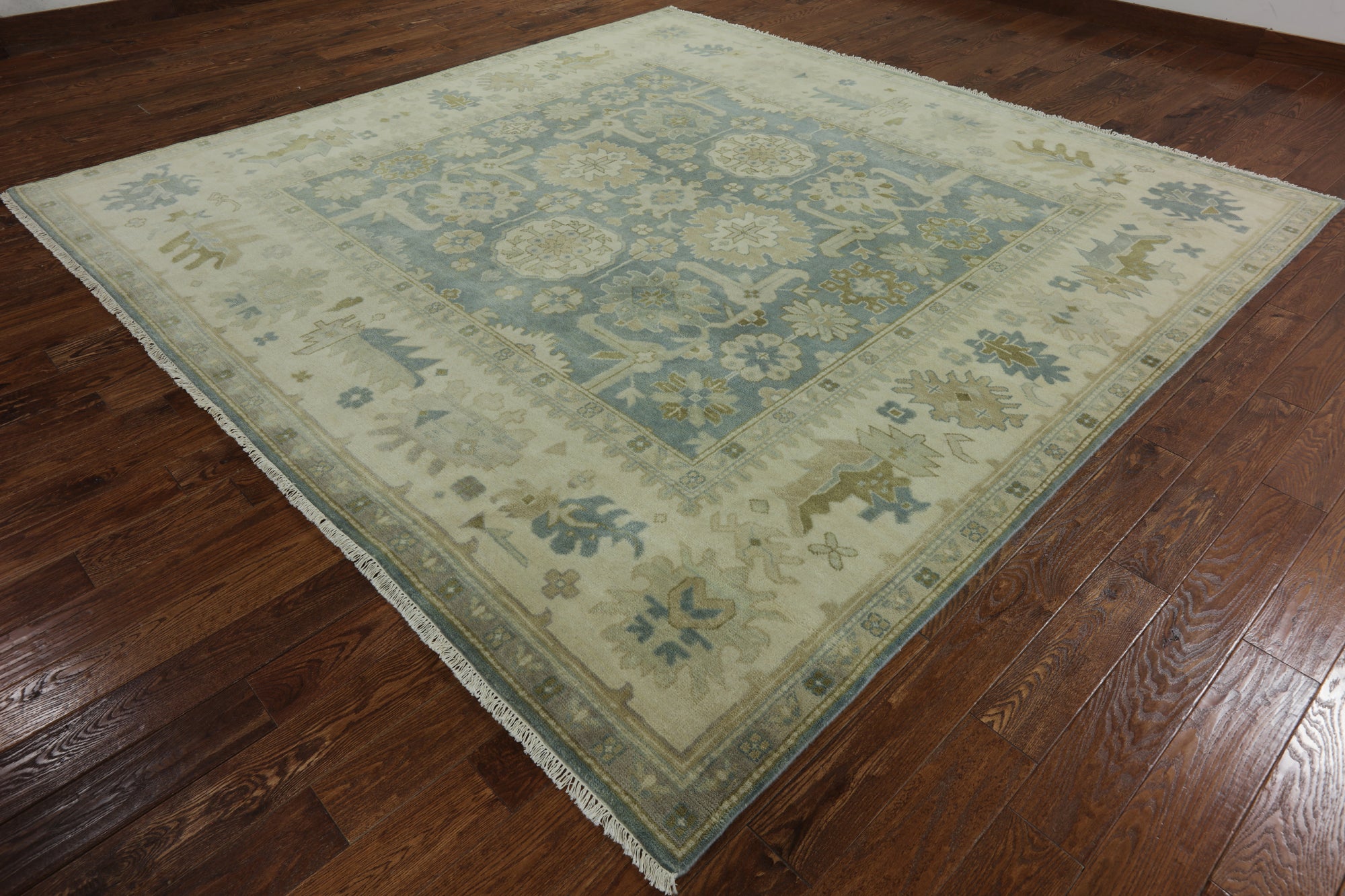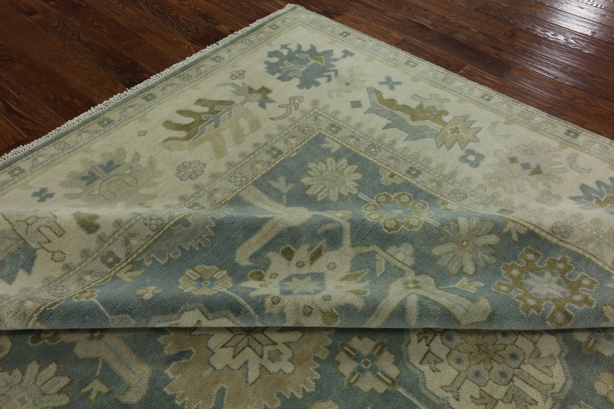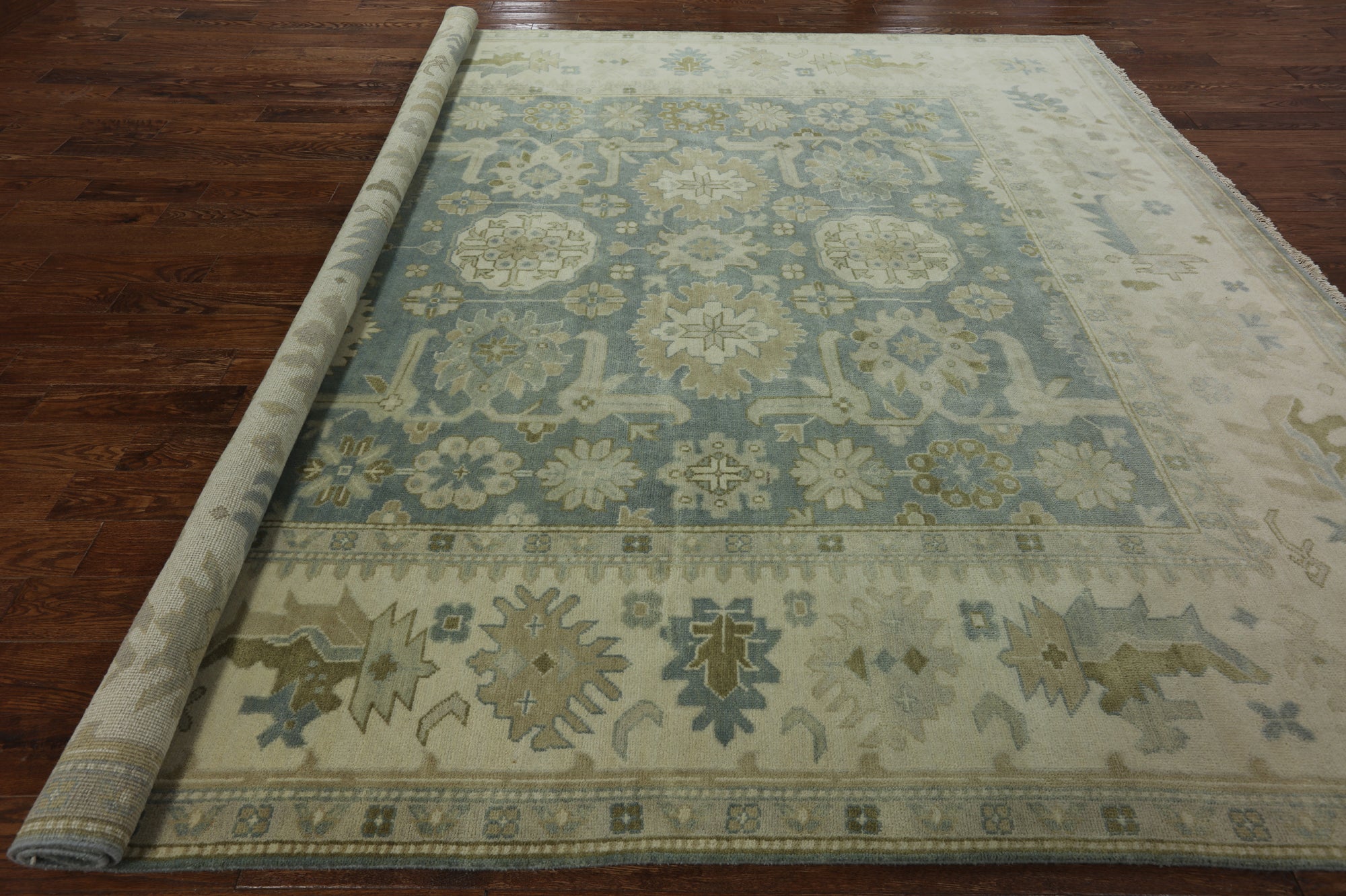 Oushak Rugs are distinctive in both pattern and color palette. Most have a blue, green, dark ivory, or gold & their designs are typically based on geometric motifs and vine / leave motifs. All colors are created with natural vegetable dyes, and the hushed tones are enhanced by the soft, lustrous wool texture. The foundation of an Oushak is cotton while the pile is wool. Oushak rugs are also double-knotted for durability.