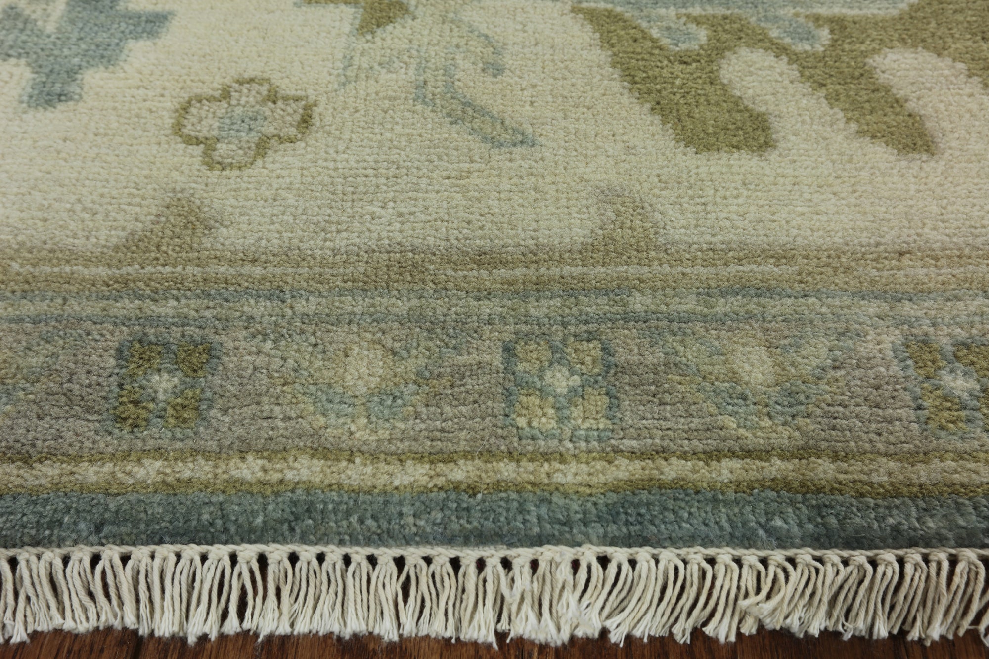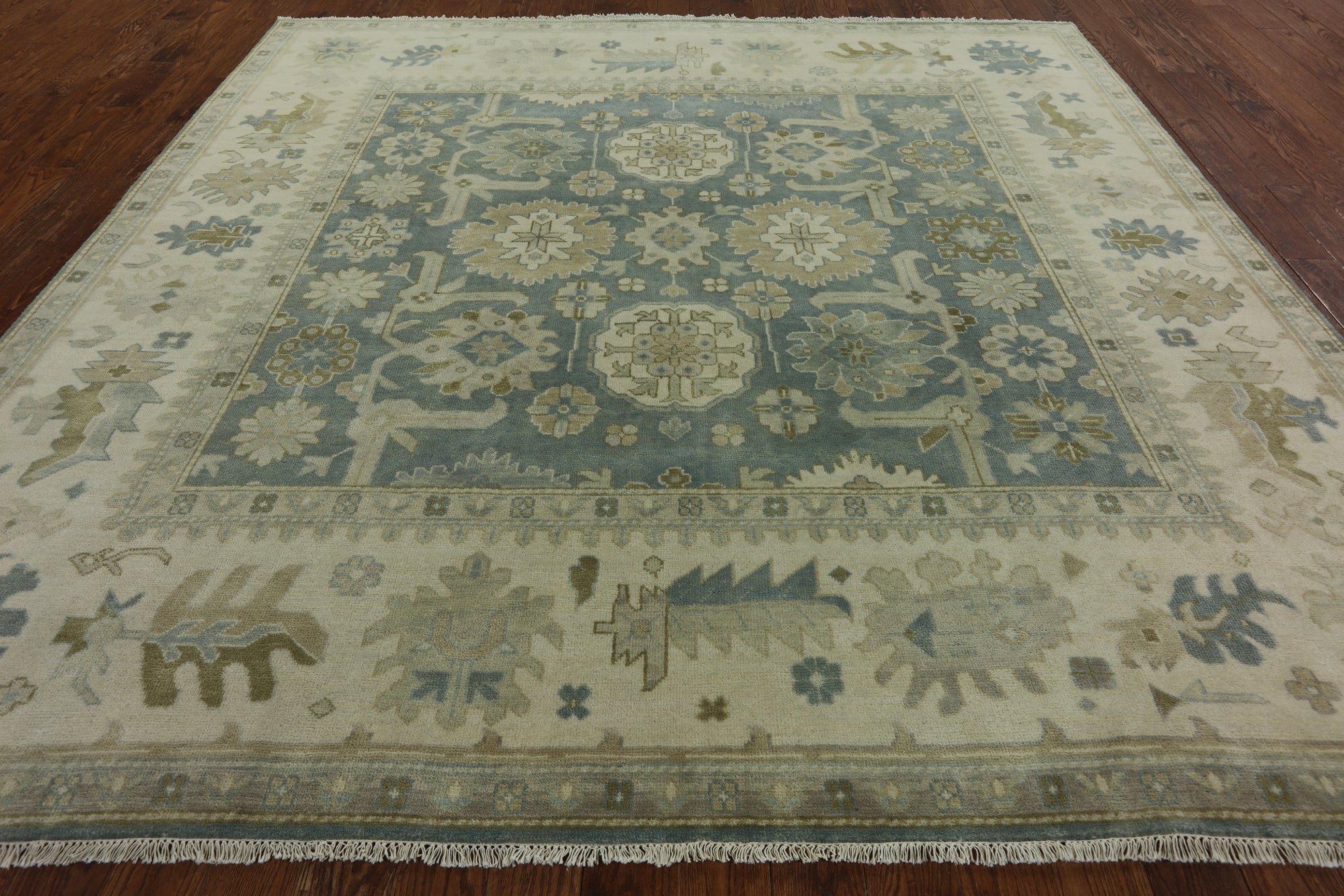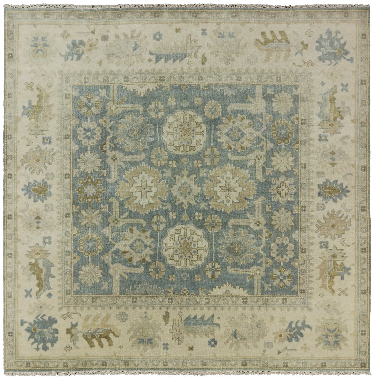 Oushak Rugs are distinctive in both pattern and color palette. Most have a blue, green, dark ivory, or gold & their designs are typically based on geometric motifs and vine / leave motifs. All colors are created with natural vegetable dyes, and the hushed tones are enhanced by the soft, lustrous wool texture. The foundation of an Oushak is cotton while the pile is wool. Oushak rugs are also double-knotted for durability.