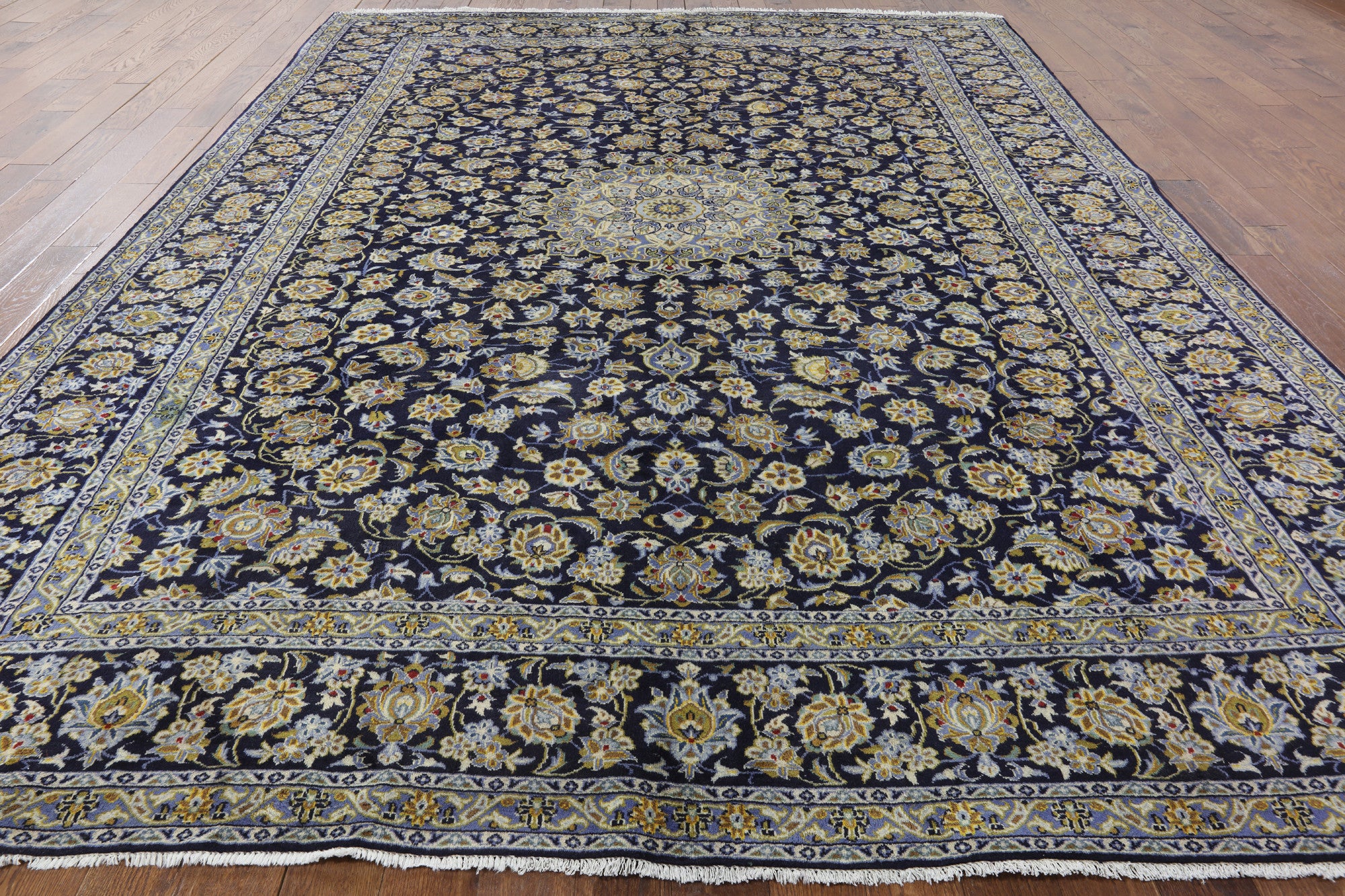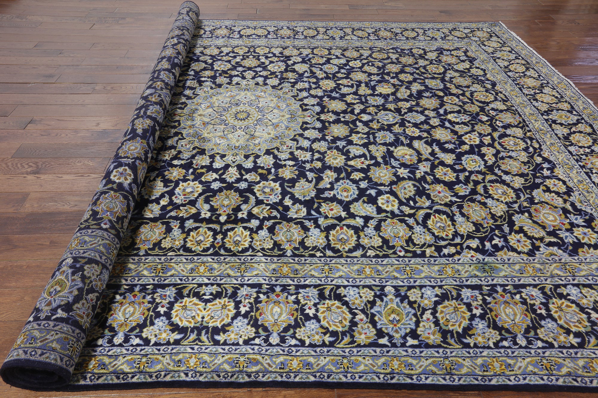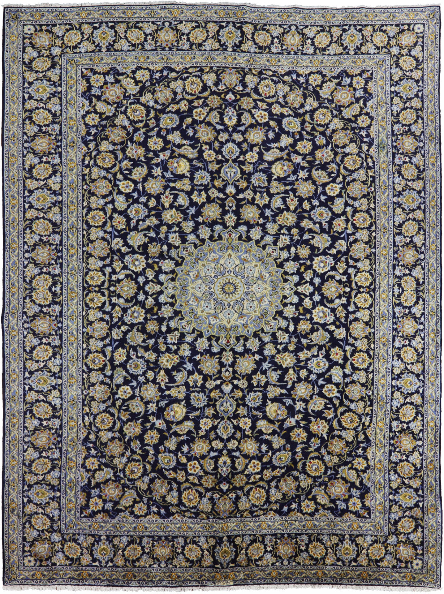 Kashan rugs are amongst the most famous of all the Persian Rugs. They have high quality weaves and their knot count is extremely tight and high. Traditionally Kashan rugs have a central medallion on a red field with navy and ivory boarders. There designs do have silk incorporated into them which highlights the designs details. The wool on these rugs is soft and the pile is tightly knotted.