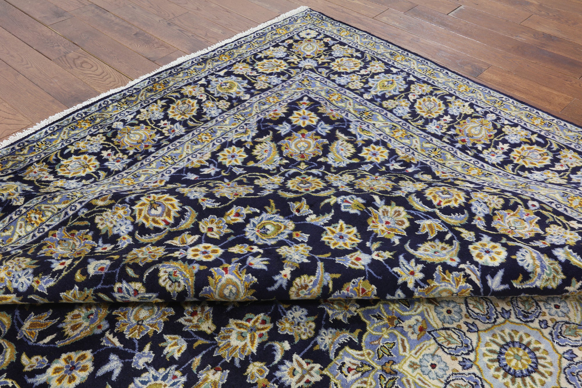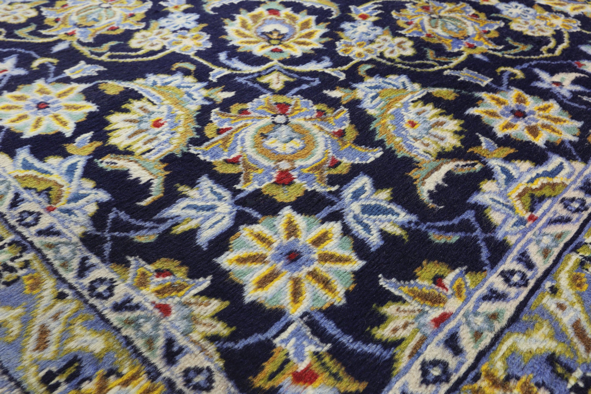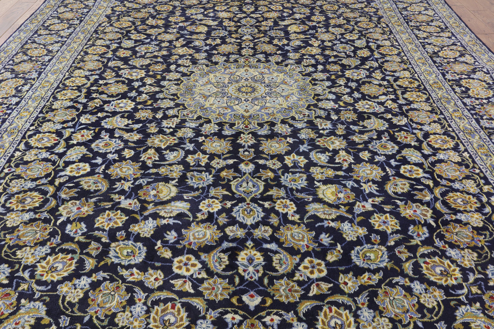 Kashan rugs are amongst the most famous of all the Persian Rugs. They have high quality weaves and their knot count is extremely tight and high. Traditionally Kashan rugs have a central medallion on a red field with navy and ivory boarders. There designs do have silk incorporated into them which highlights the designs details. The wool on these rugs is soft and the pile is tightly knotted.