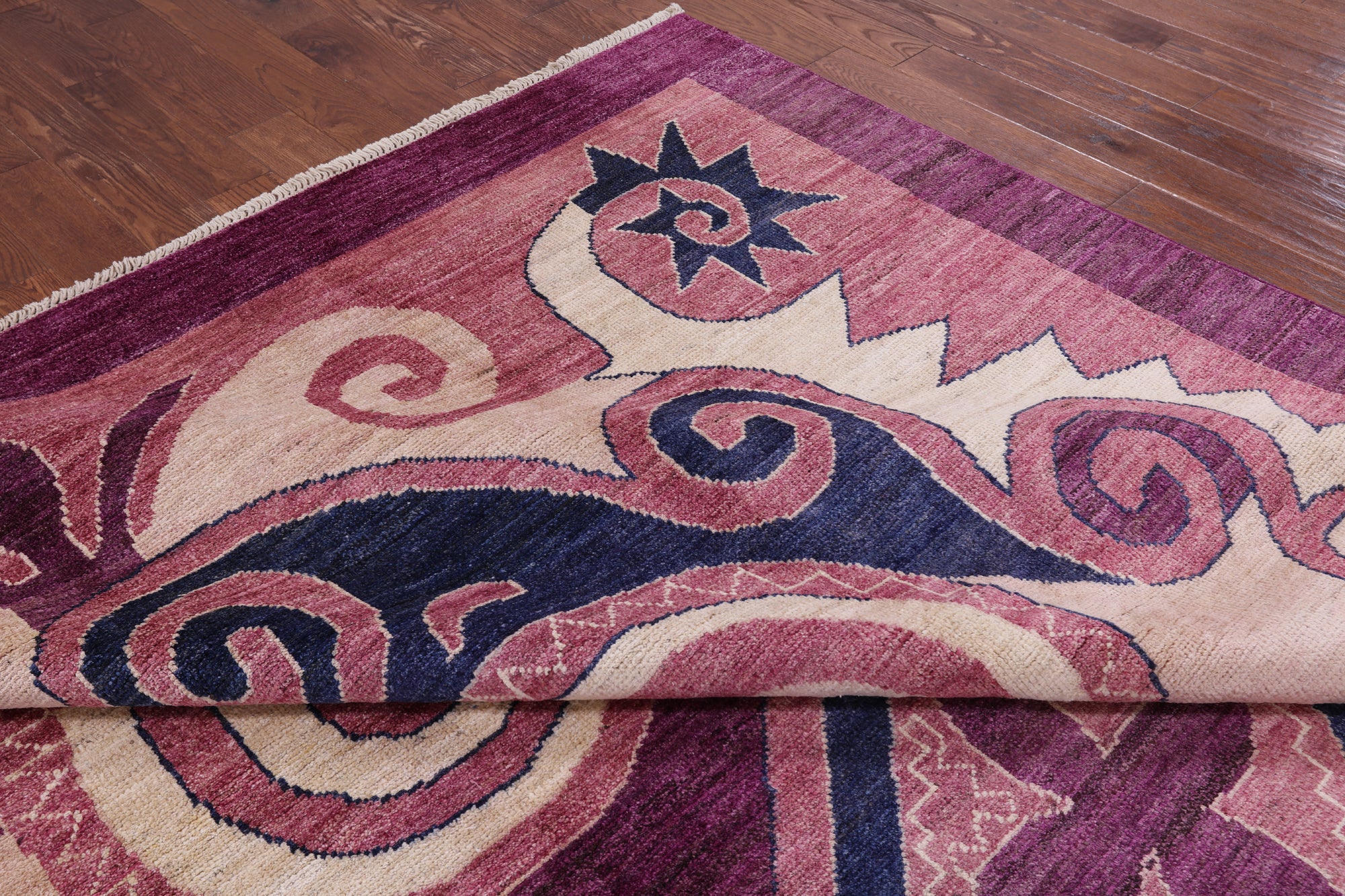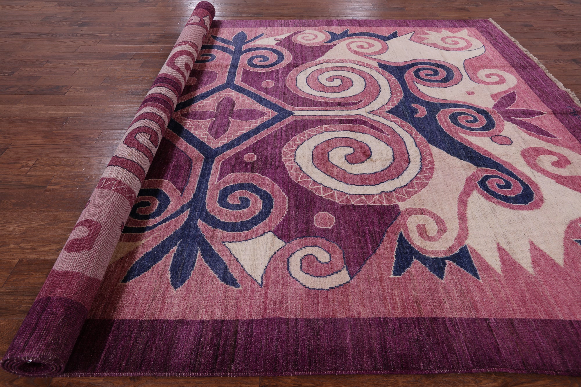 Purple Ikat Handmade Wool Area Rug - 10' 0" X 14' 3"