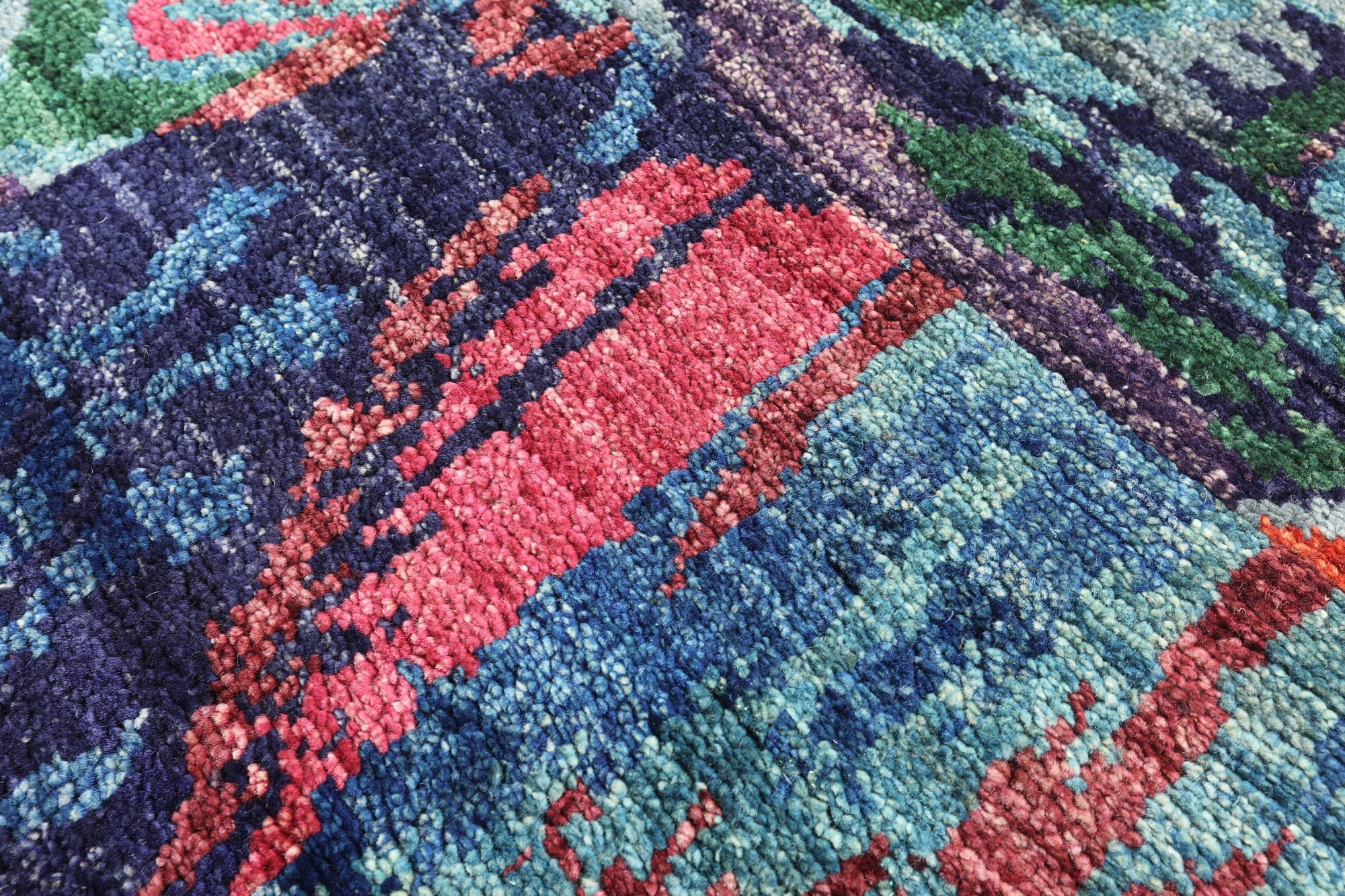Art deco rugs are designed with both medallion as well as all-over designs. Colors are vibrant & energetic. Rich tones of magenta, turquoise, emerald, ruby and violet are common. Art Deco carpets are woven with pile & sometimes flat woven without pile, using various materials such as silk, wool, and cotton.