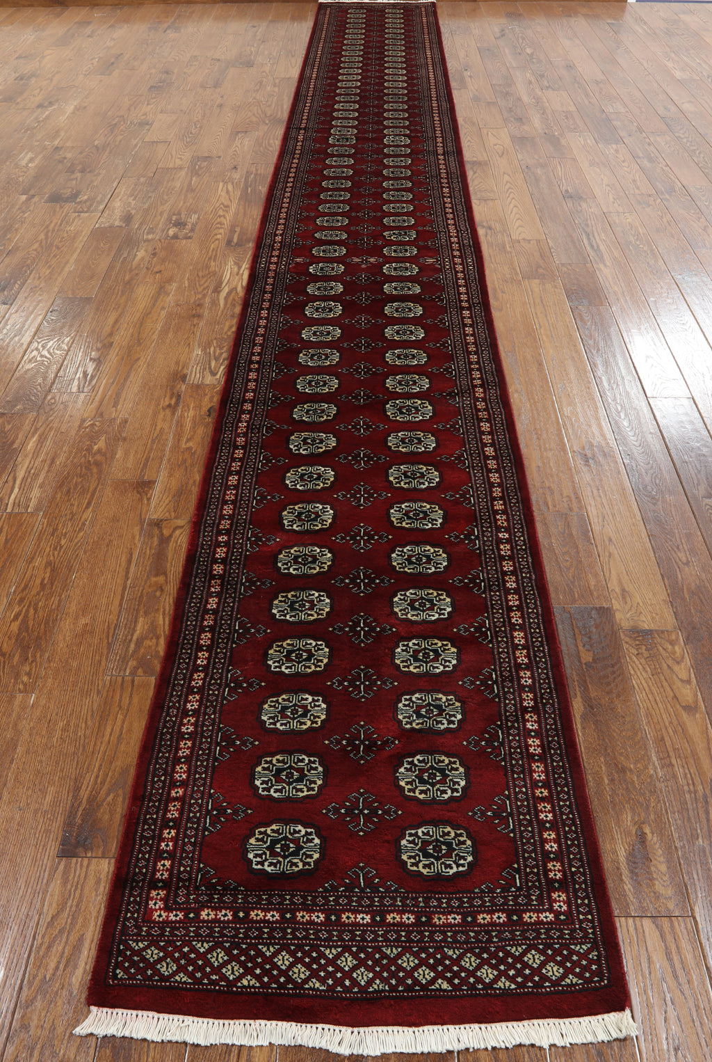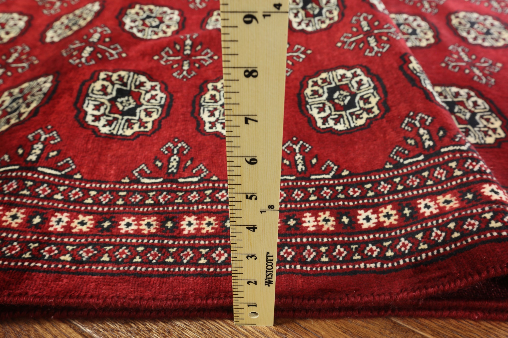 Bokhara Rugs are classic Turkoman designs originally created by nomadic tribes in India. Bokhara Rugs are among the most popular handmade rugs widely produced in Pakistan, India & Afghanistan. There foundation and heavy pile consist of wool, and have a soft luxurious feel. There unique designs consist of repeating geometric designs and vary from one tribe to another. Designs are commonly dark blue/navy, black, brown, or red with ivory accents