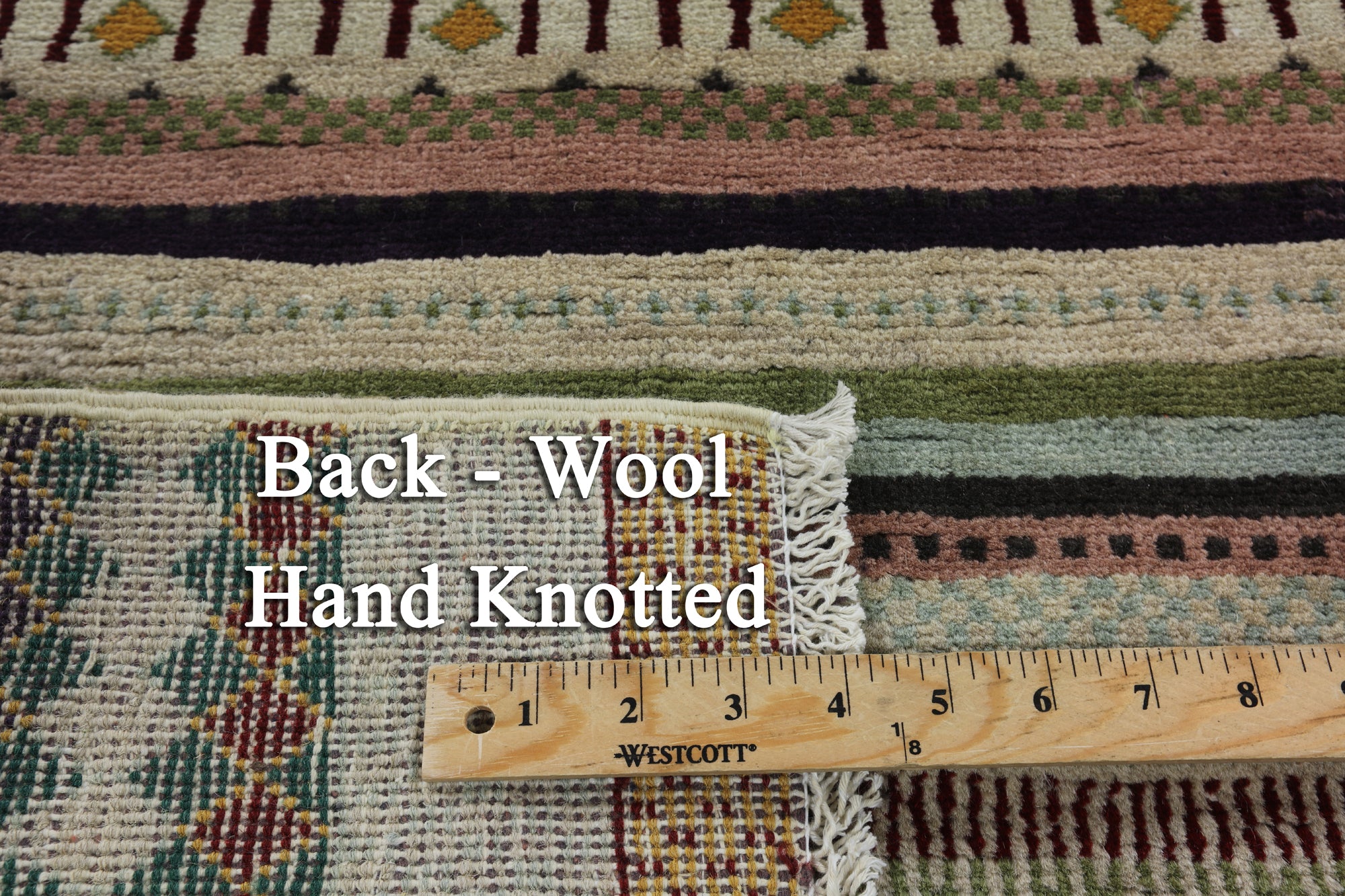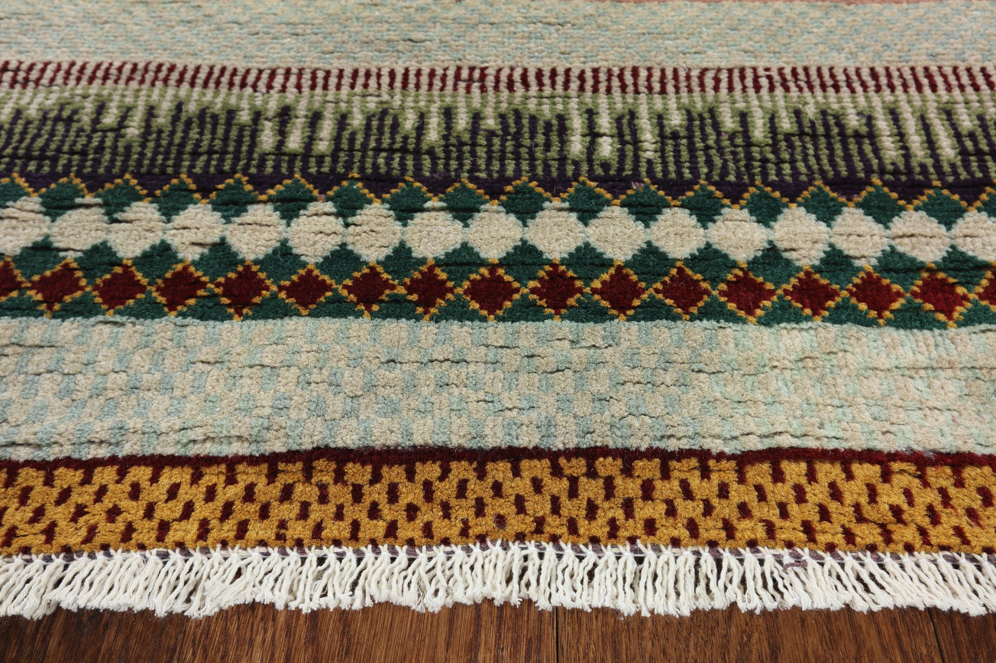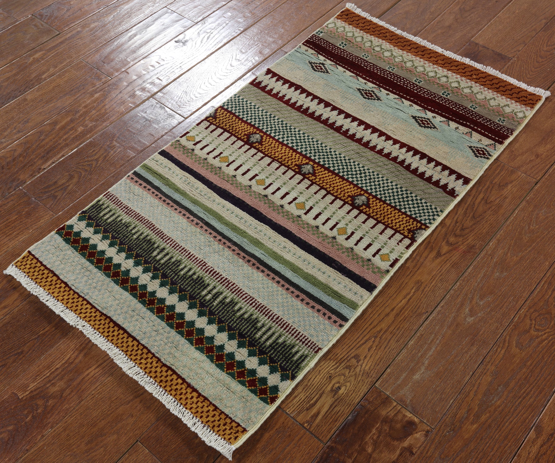 Gabbeh Rugs feature hand-spun wool in both the pile and foundation. These rugs are characterized by their abstract designs that relies upon open fields of color and a playfulness with geometric figures used to depict a story, person, or event. Gabbeh Rugs are popular in a contemporary or modern setting and are extremely durable, usually small to medium size.