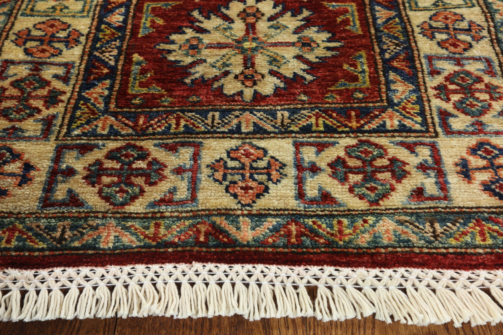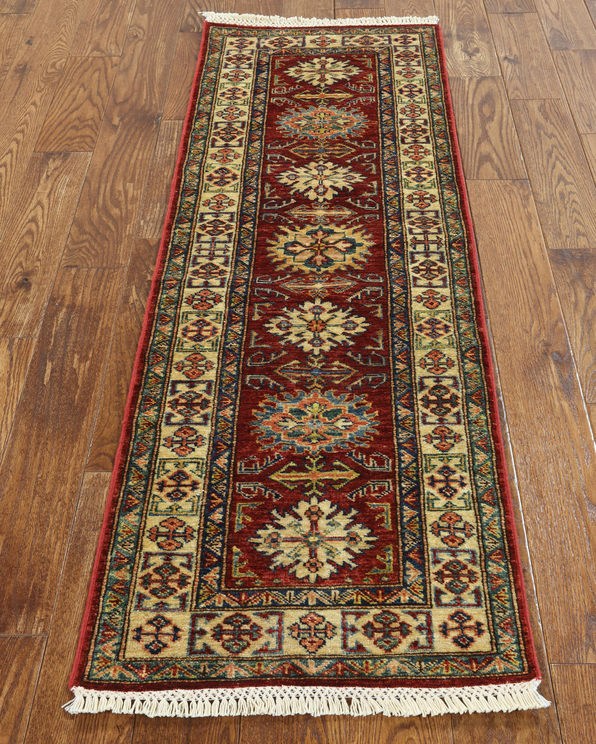 Kazak Rugs are popular for their stunning geometric designs & high quality dyes. Kazak patterns tend to be red, yellow/gold and blue. Designs include, but are not limited to animals, flowers, medallions, & iconic figures such as geometric people/ and animals & symbolic motifs.