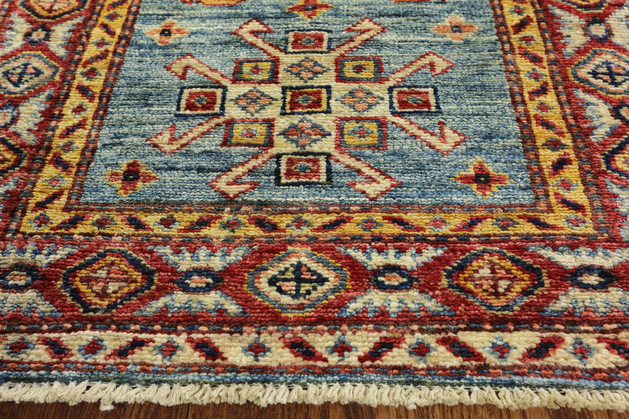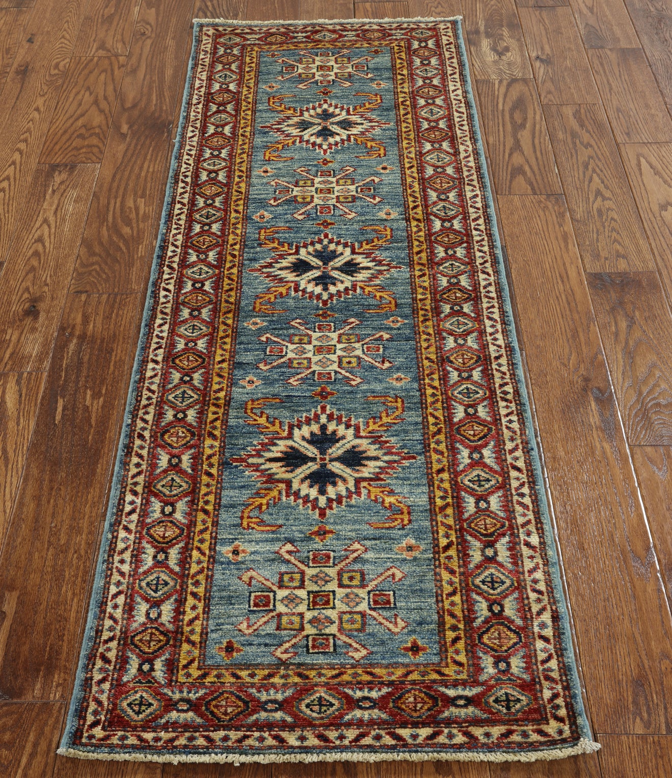 Kazak Rugs are popular for their stunning geometric designs & high quality dyes. Kazak patterns tend to be red, yellow/gold and blue. Designs include, but are not limited to animals, flowers, medallions, & iconic figures such as geometric people/ and animals & symbolic motifs.