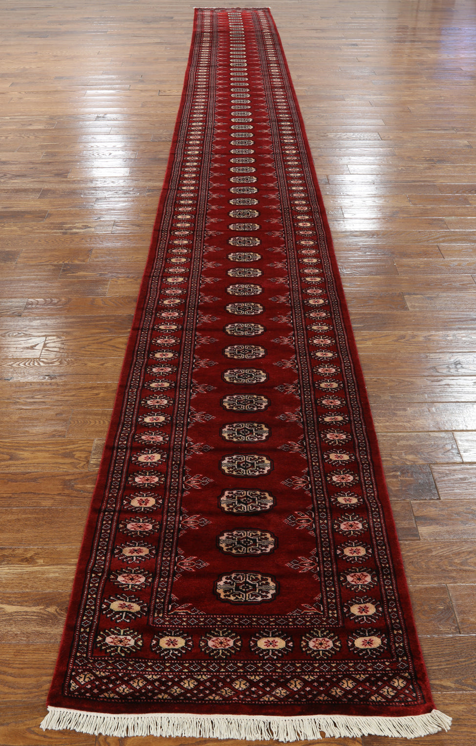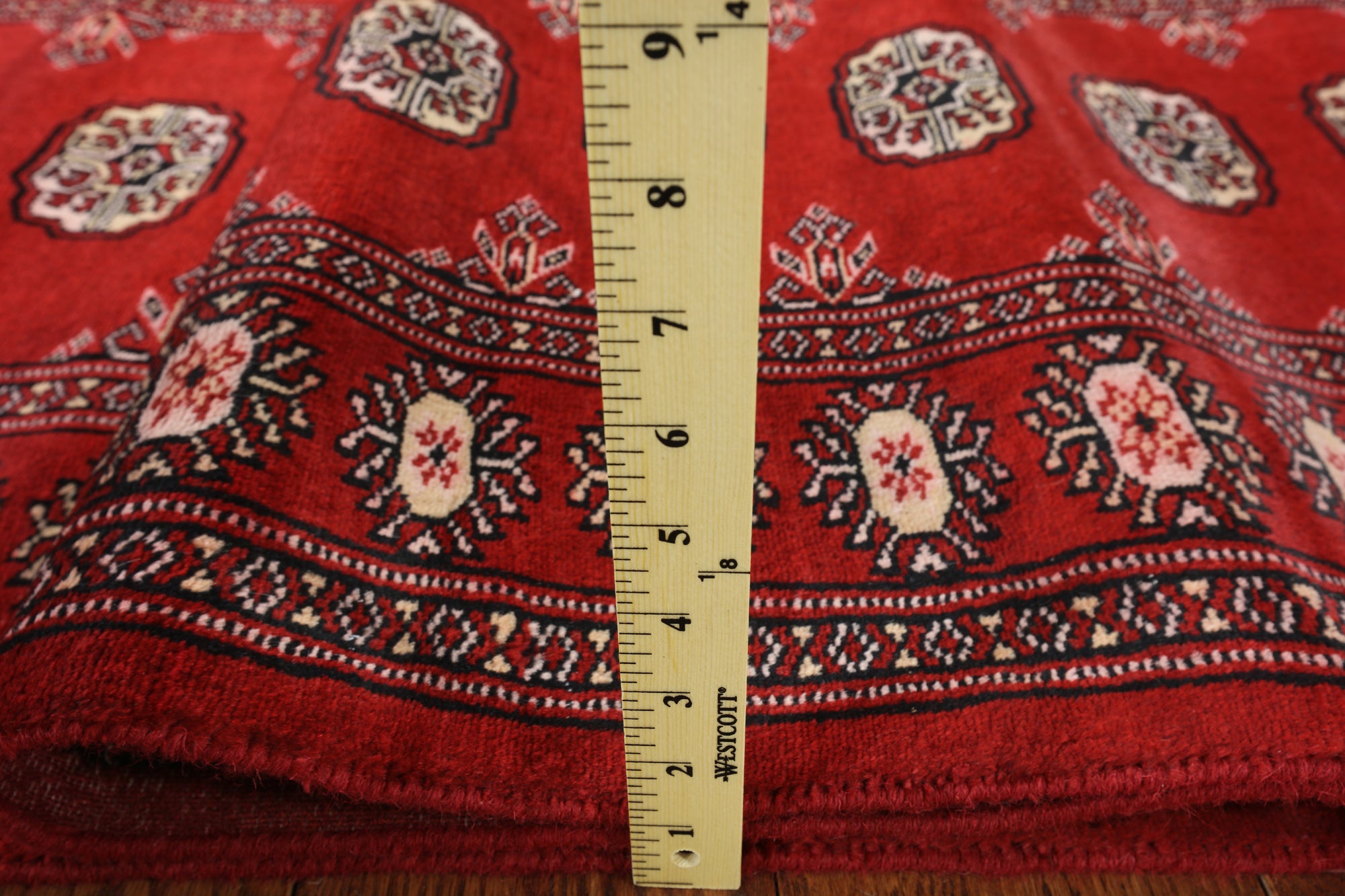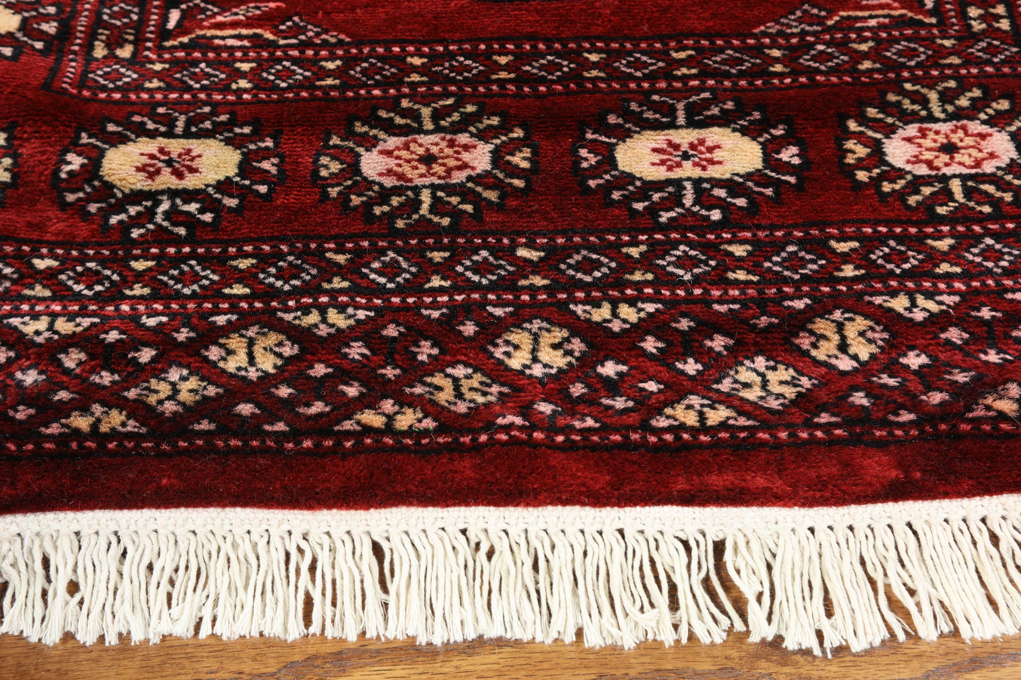 Bokhara Rugs are classic Turkoman designs originally created by nomadic tribes in India. Bokhara Rugs are among the most popular handmade rugs widely produced in Pakistan, India & Afghanistan. There foundation and heavy pile consist of wool, and have a soft luxurious feel. There unique designs consist of repeating geometric designs and vary from one tribe to another. Designs are commonly dark blue/navy, black, brown, or red with ivory accents