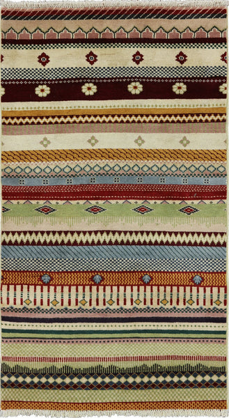 3' X 5' Handmade Lori Super Gabbeh Oriental Wool Rug