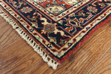 Heriz/Serapi Rugs are hand-knotted with a thick, heavy pile and a rich color palette. Most designs are large geometric medallions or an all over highly stylized floral motif design. Serapi’s are made with pure natural vegetable dyes, hand-spun wool, graphic designs and inspired artistry. Traditional Heriz colors are red, black, blues, & ivory.