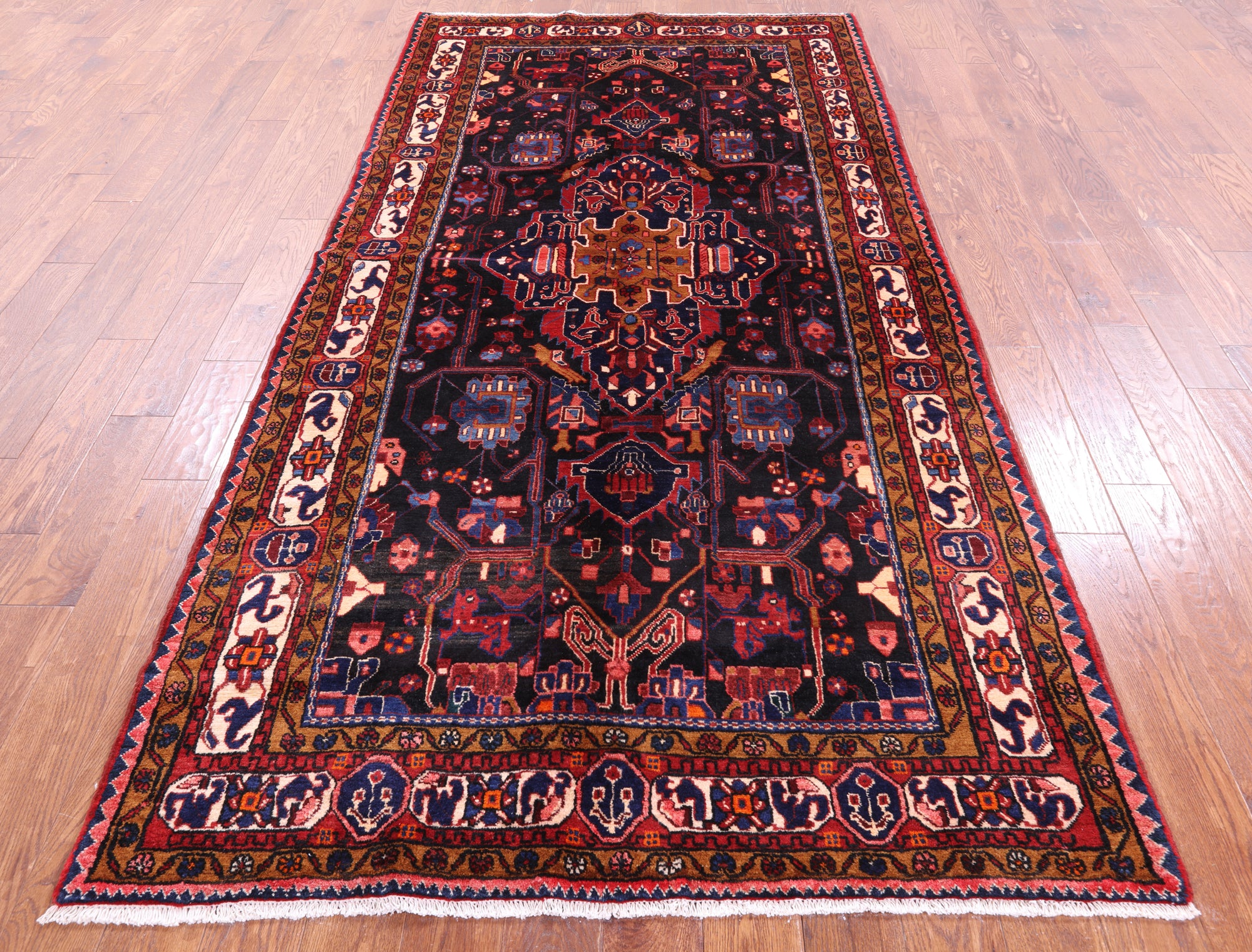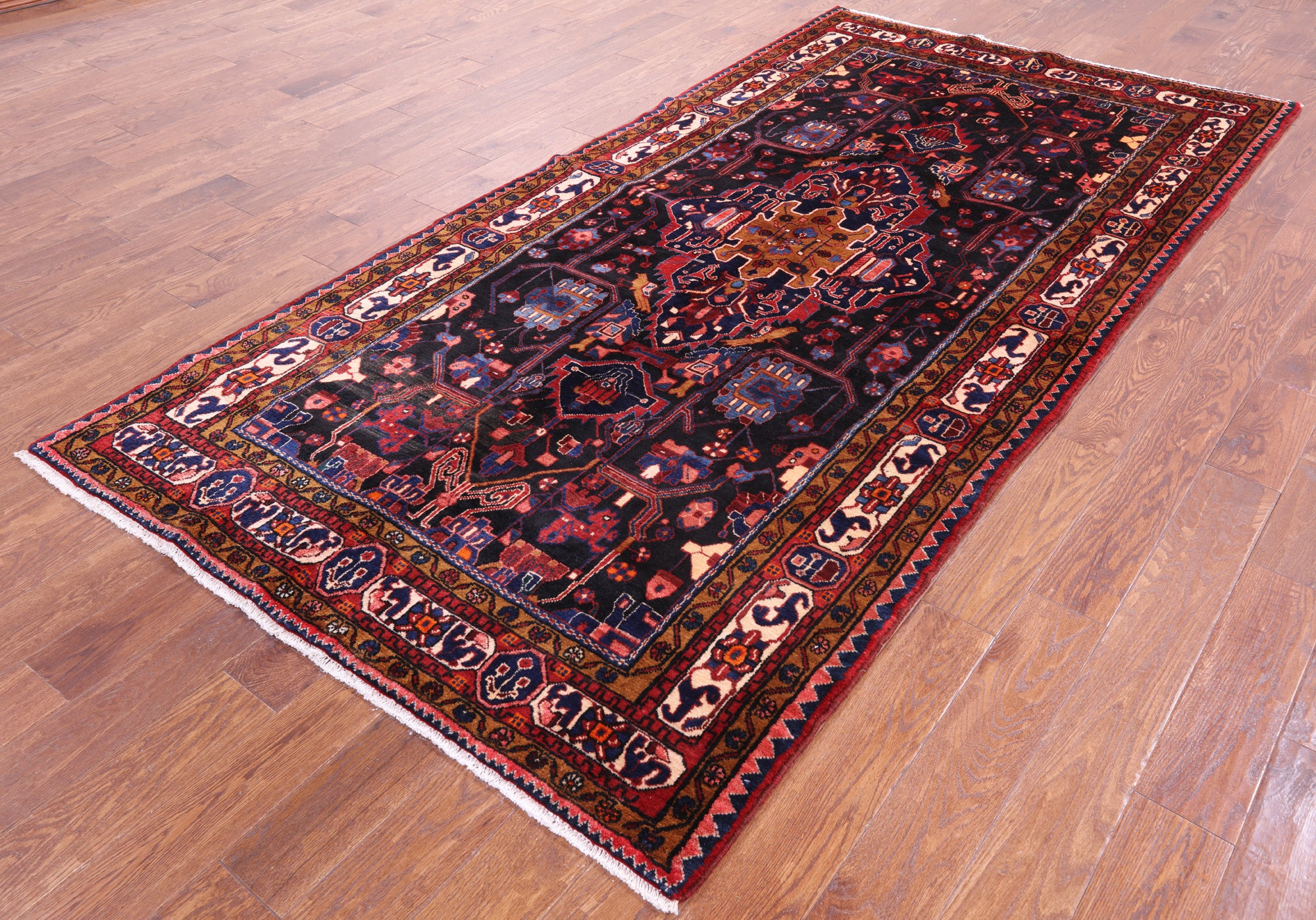 Black New Authentic Persian Nahavand Rug - 4' 11" X 10' 0"