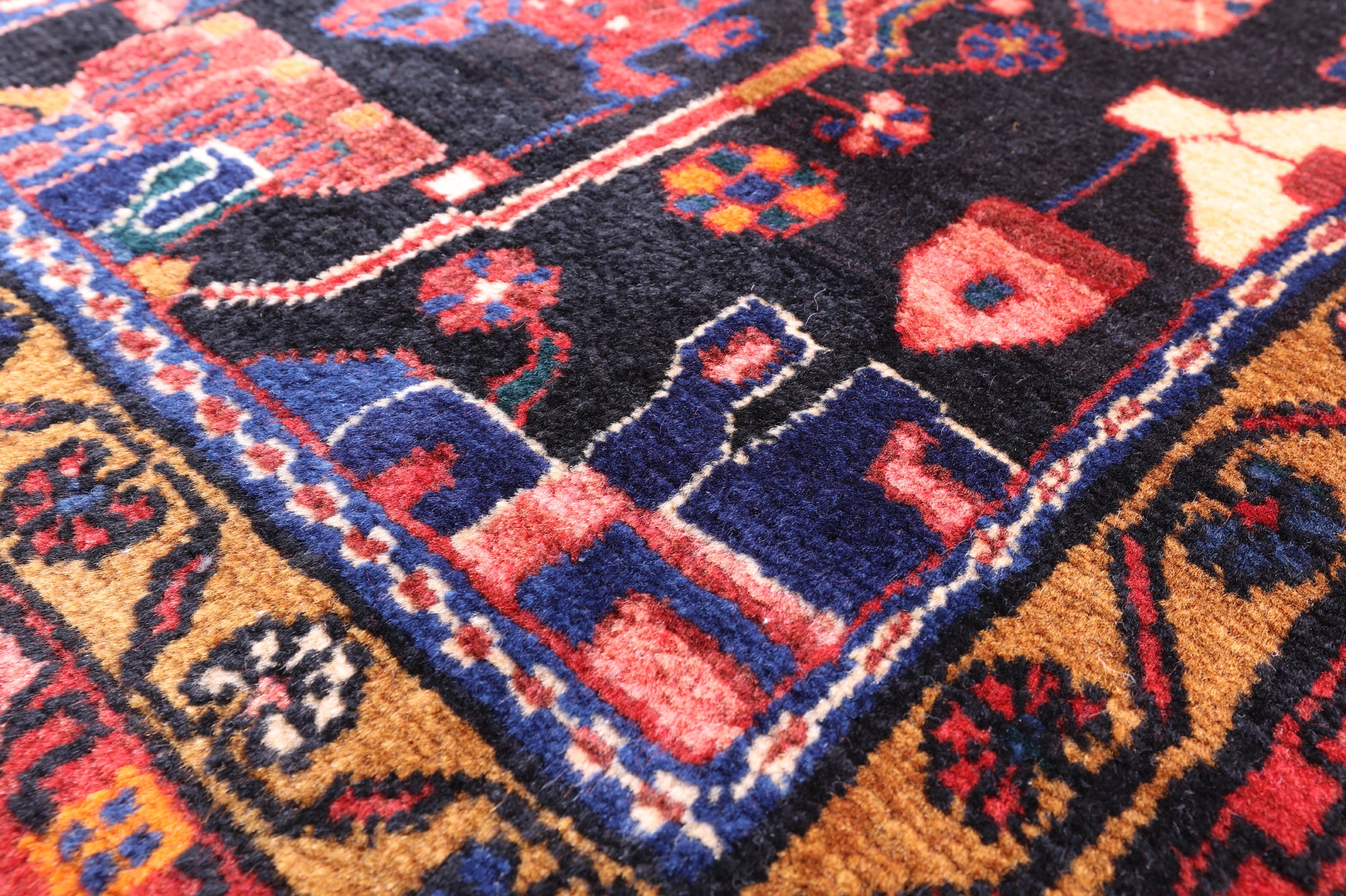The quality of Nahavand rugs is very high this is thanks to the wool that is used to create these beautiful durable rugs. Most of the design elements in the Nahavand rugs are geometrical motifs. They often have β€œleaf’ like medallions in the center with flowers and twigs all around the background. The dominating colors for these rugs are often pale rust reds, beige, and many more.