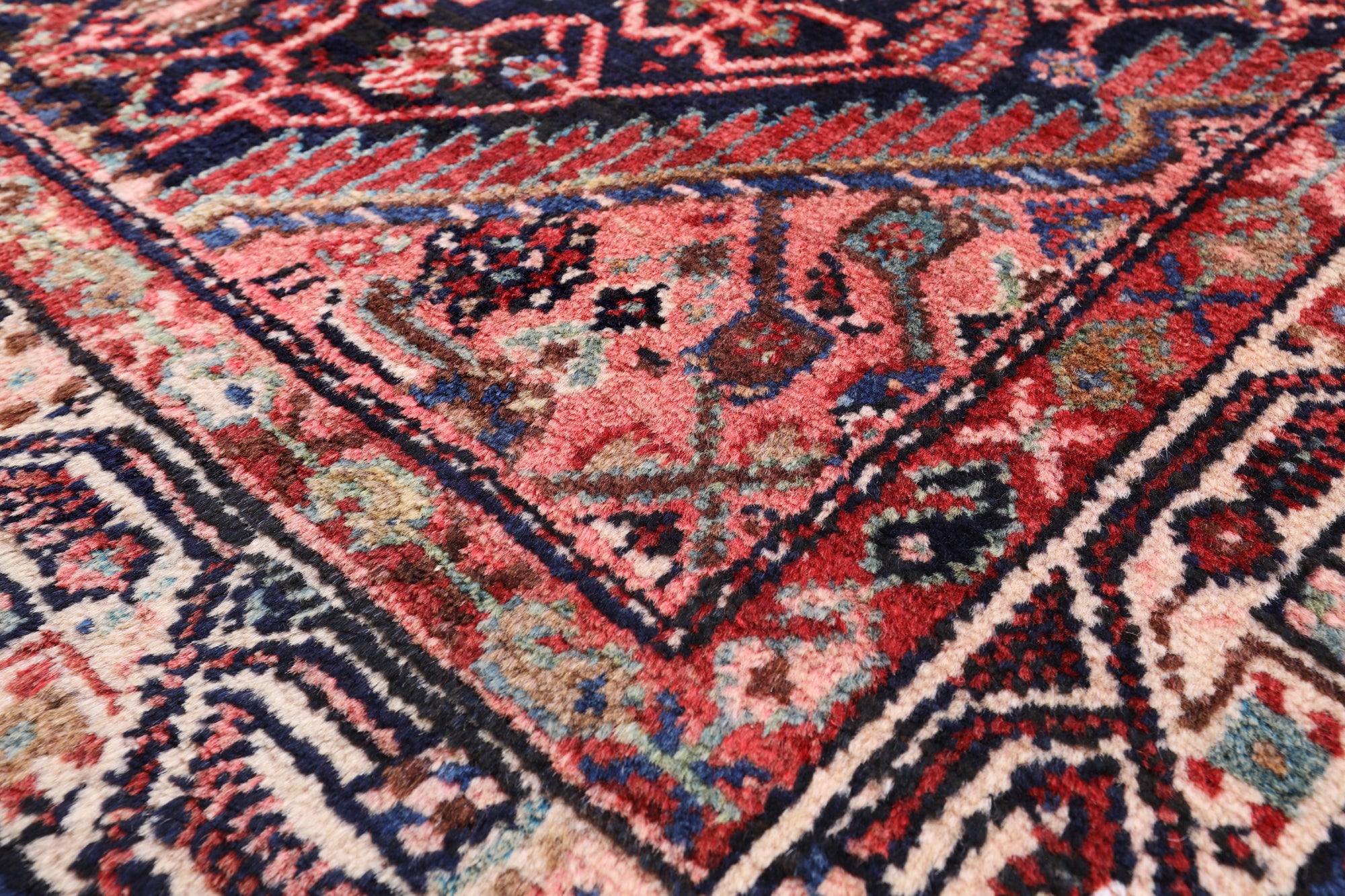 The quality of Nahavand rugs is very high this is thanks to the wool that is used to create these beautiful durable rugs. Most of the design elements in the Nahavand rugs are geometrical motifs. They often have β€œleaf’ like medallions in the center with flowers and twigs all around the background. The dominating colors for these rugs are often pale rust reds, beige, and many more.