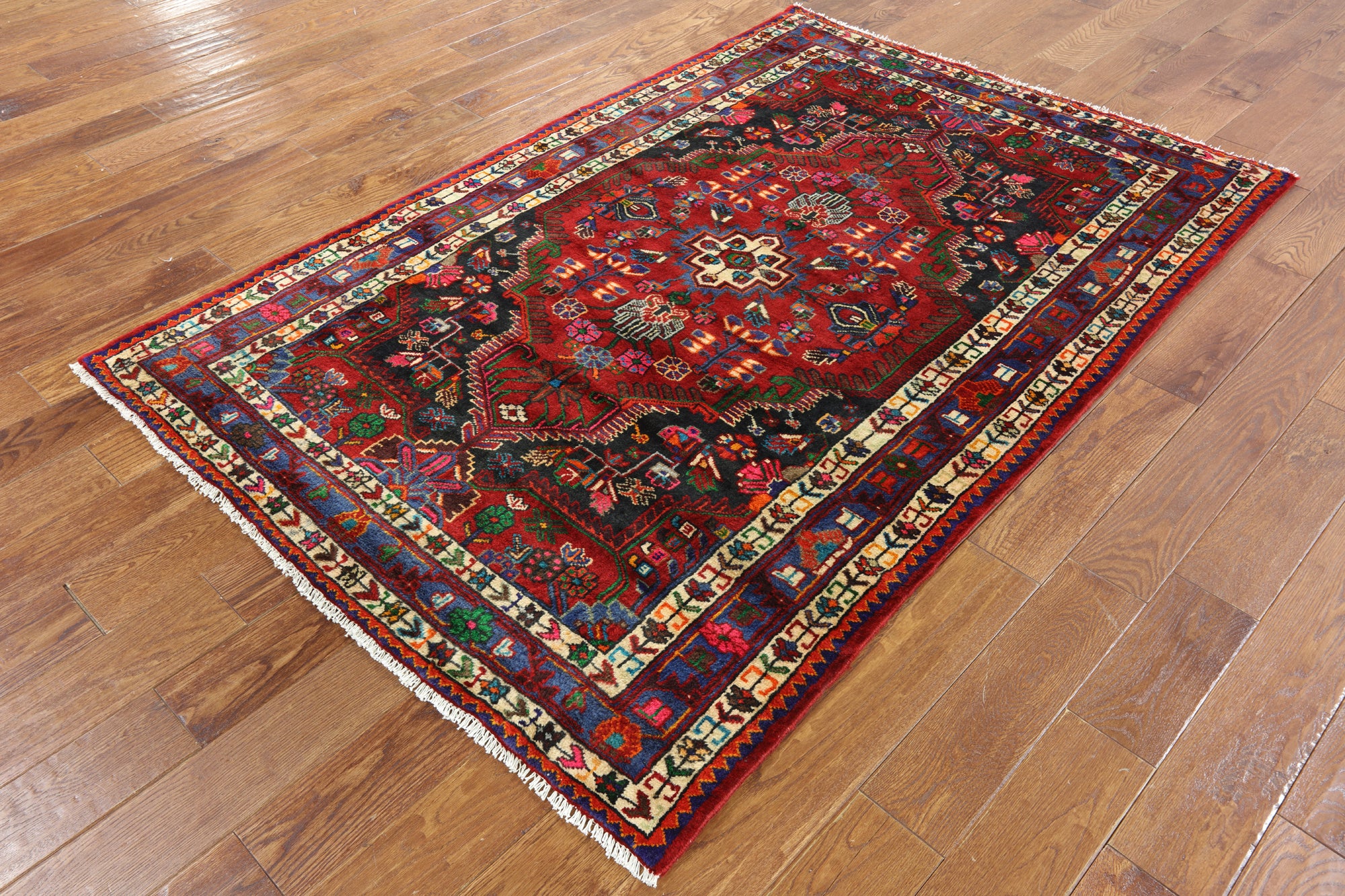 4' 7" X 6' 11" Authentic Persian Hamadan Full Pile Rug