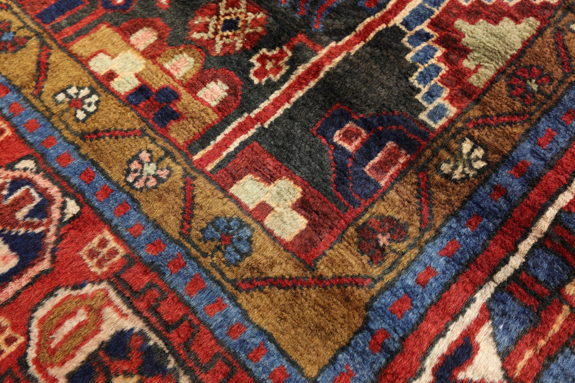 The quality of Nahavand rugs is very high this is thanks to the wool that is used to create these beautiful durable rugs. Most of the design elements in the Nahavand rugs are geometrical motifs. They often have β€œleaf’ like medallions in the center with flowers and twigs all around the background. The dominating colors for these rugs are often pale rust reds, beige, and many more.