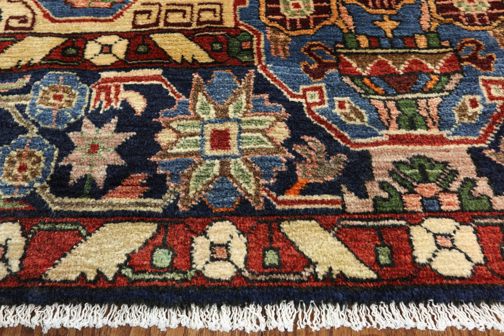 The quality of Nahavand rugs is very high this is thanks to the wool that is used to create these beautiful durable rugs. Most of the design elements in the Nahavand rugs are geometrical motifs. They often have β€œleaf’ like medallions in the center with flowers and twigs all around the background. The dominating colors for these rugs are often pale rust reds, beige, and many more.