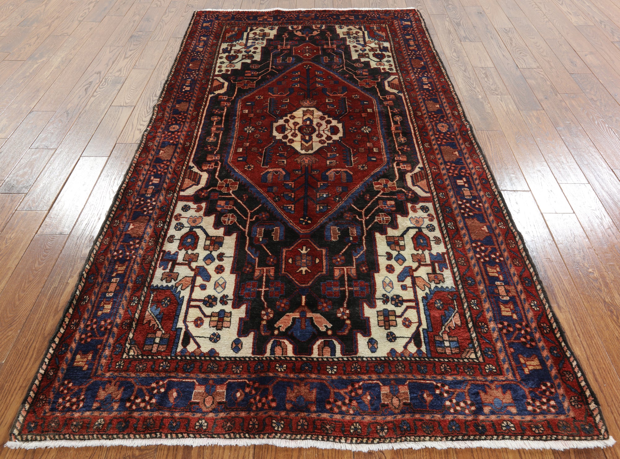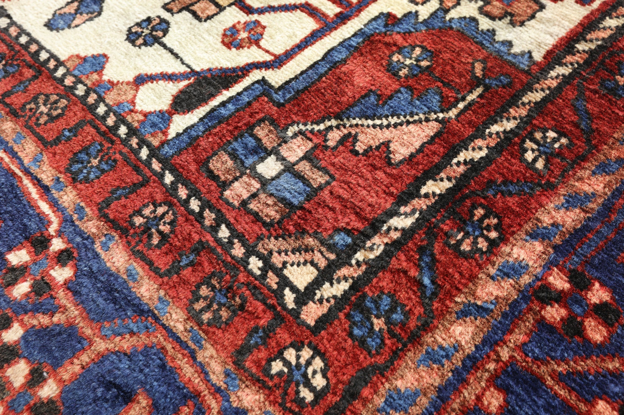 Easily recognizable for their typical patterns and sizes, Hamadan rugs are durable and made of high quality wool. Their design patterns are mostly geometric, but vary with medallion patterns. The colors which dominate their color schemes are, indigo blues, reds, and many more.