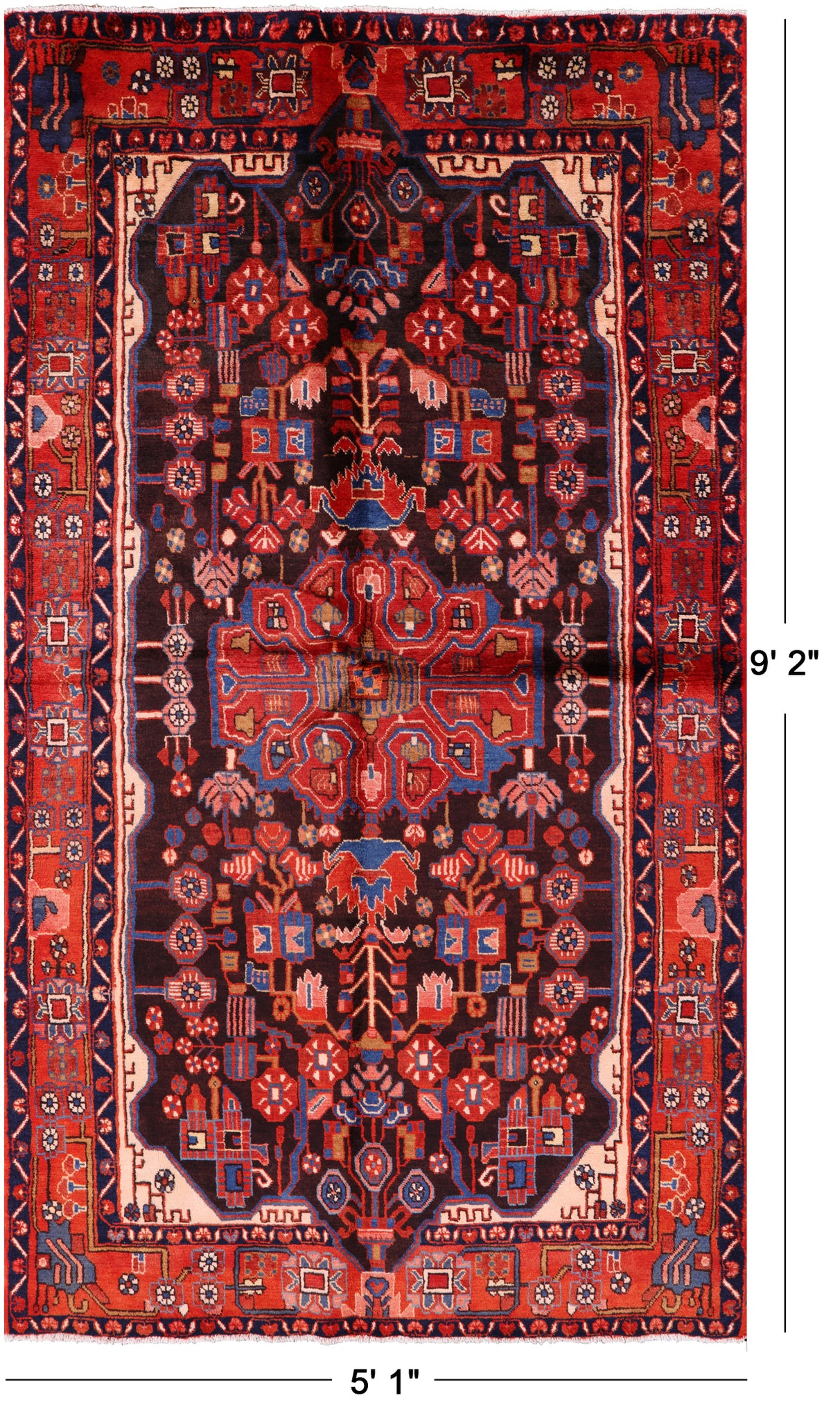 The quality of Nahavand rugs is very high this is thanks to the wool that is used to create these beautiful durable rugs. Most of the design elements in the Nahavand rugs are geometrical motifs. They often have β€œleaf’ like medallions in the center with flowers and twigs all around the background. The dominating colors for these rugs are often pale rust reds, beige, and many more.