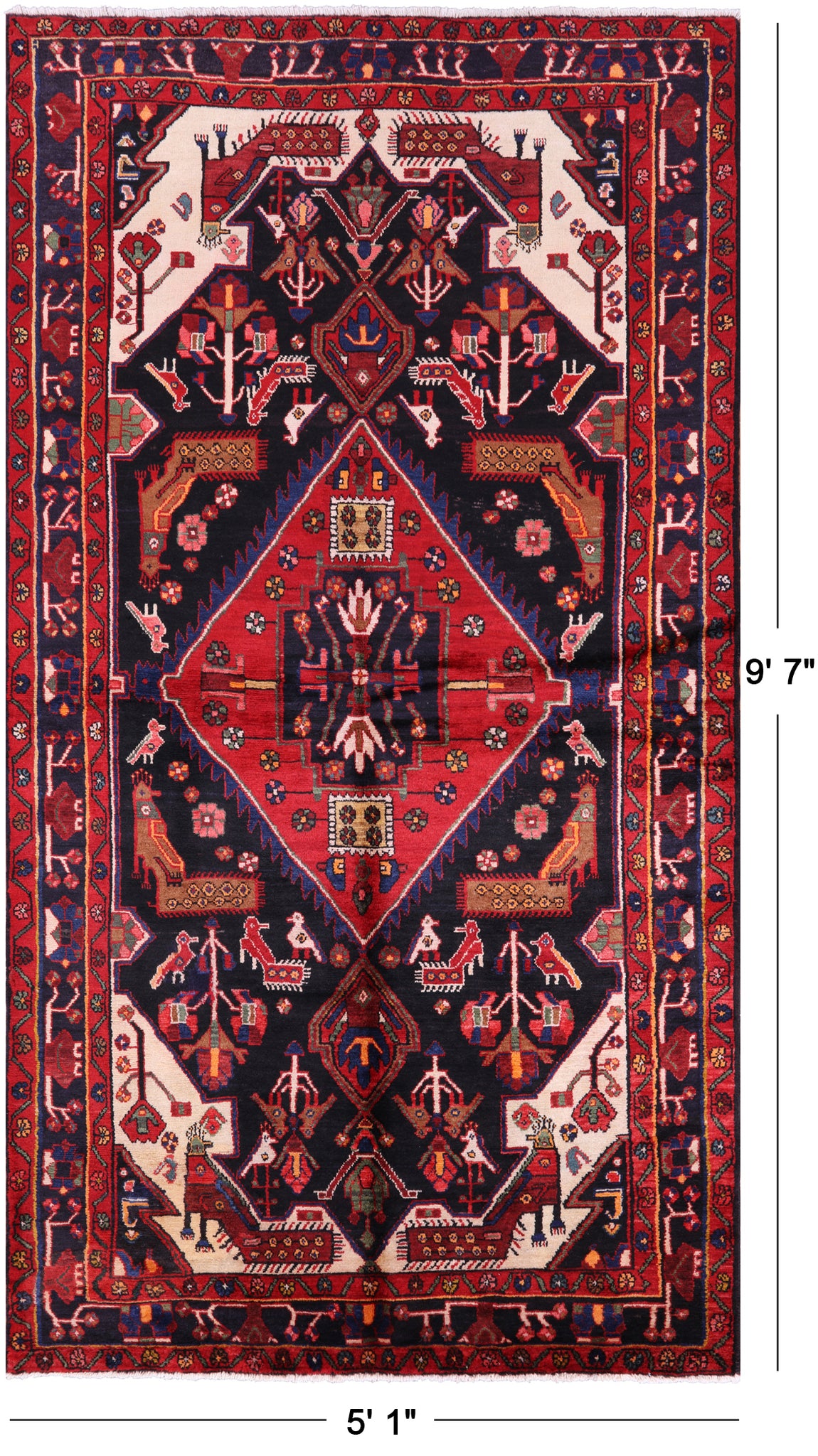 Black New Authentic Persian Nahavand Rug - 5' 1" X 9' 7"