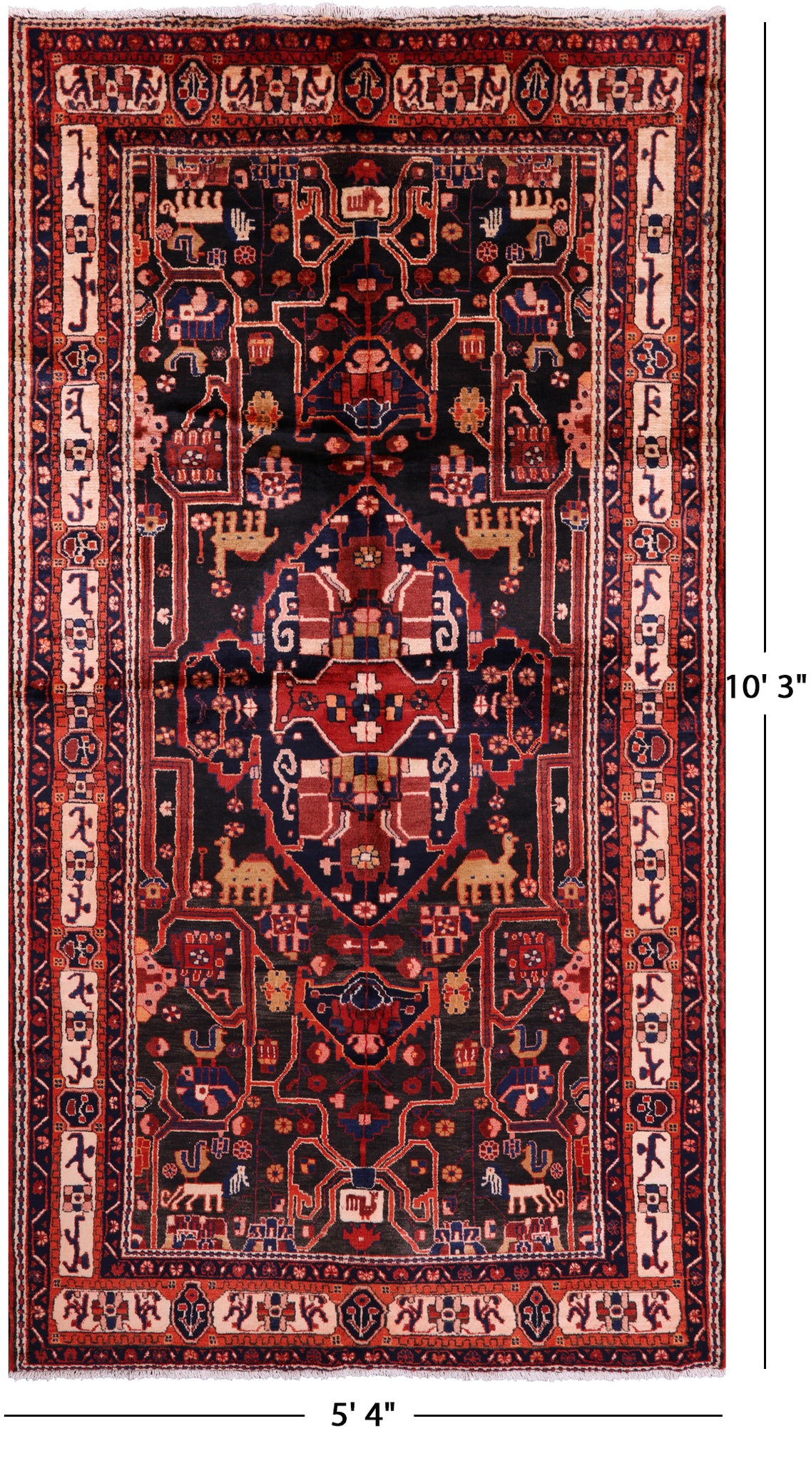 Black New Authentic Persian Nahavand Handmade Rug - 5' 4" X 10' 3"