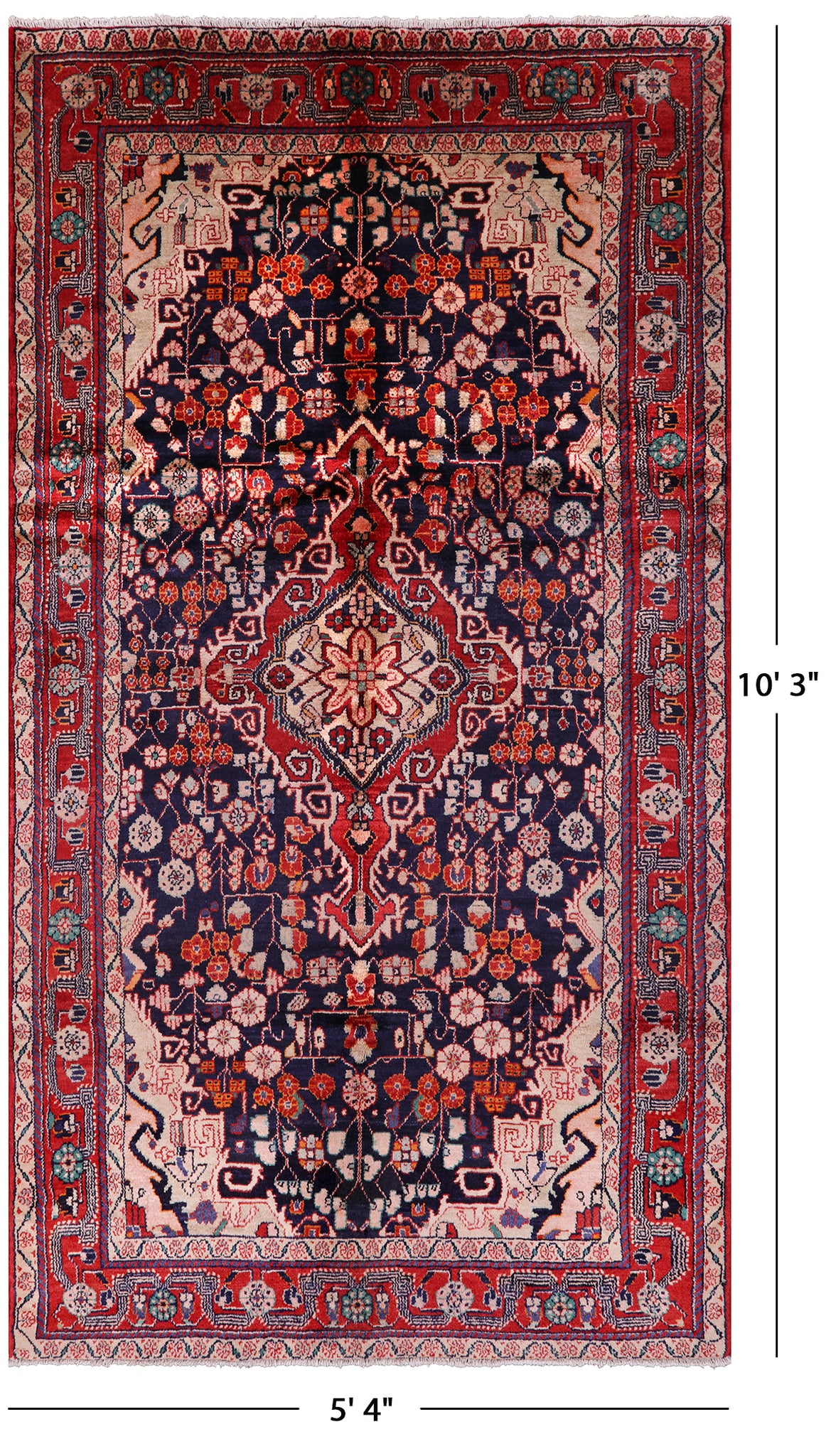 The quality of Nahavand rugs is very high this is thanks to the wool that is used to create these beautiful durable rugs. Most of the design elements in the Nahavand rugs are geometrical motifs. They often have β€œleaf’ like medallions in the center with flowers and twigs all around the background. The dominating colors for these rugs are often pale rust reds, beige, and many more.