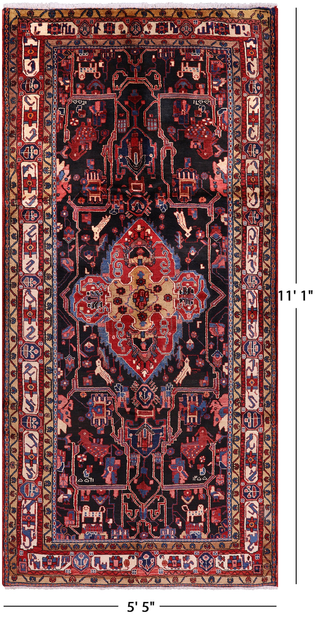 Black New Authentic Persian Nahavand Handmade Rug - 5' 5" X 11' 1"