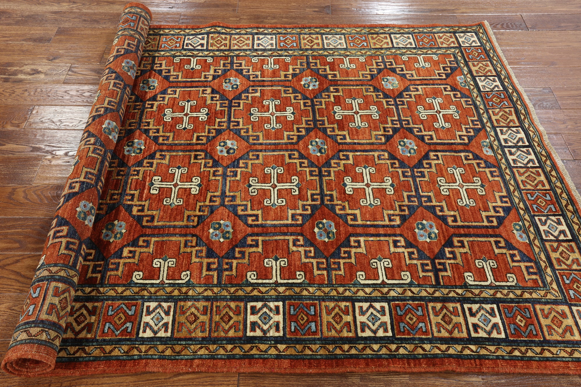 Heriz/Serapi Rugs are hand-knotted with a thick, heavy pile and a rich color palette. Most designs are large geometric medallions or an all over highly stylized floral motif design. Serapi‰Ϋͺs are made with pure natural vegetable dyes, hand-spun wool, graphic designs and inspired artistry. Traditional Heriz colors are red, black, blues, & ivory.