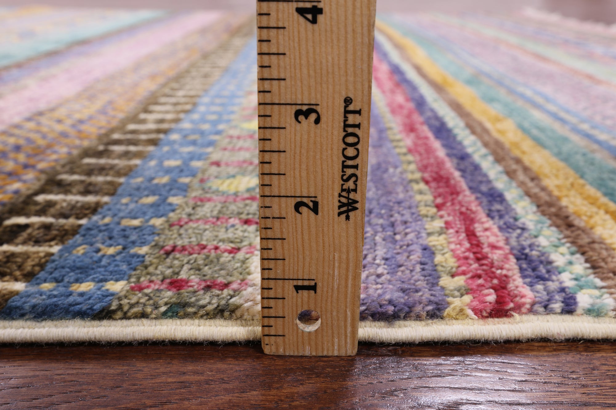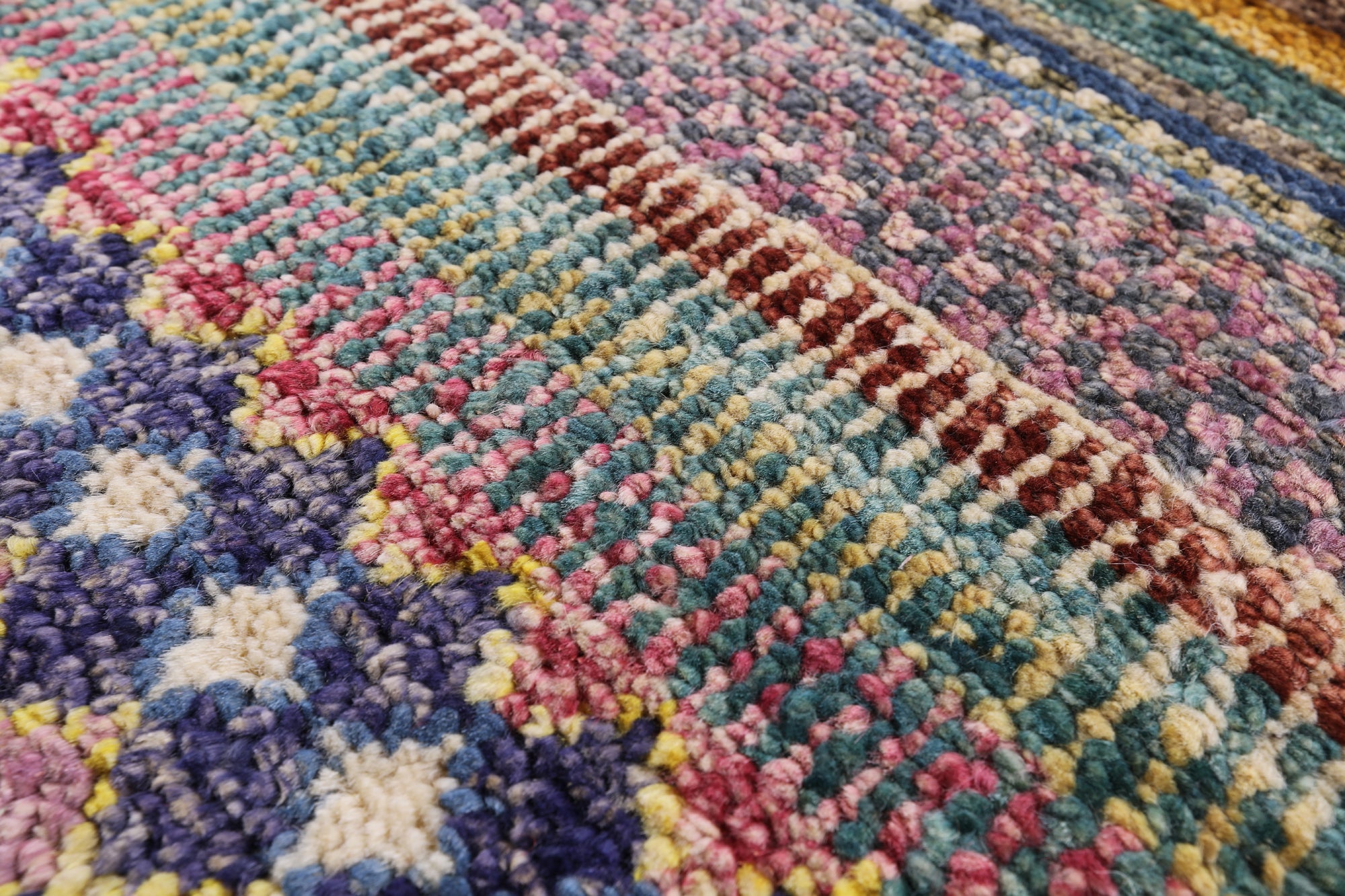 Gabbeh Rugs feature hand-spun wool in both the pile and foundation. These rugs are characterized by their abstract designs that relies upon open fields of color and a playfulness with geometric figures used to depict a story, person, or event. Gabbeh Rugs are popular in a contemporary or modern setting and are extremely durable, usually small to medium size.